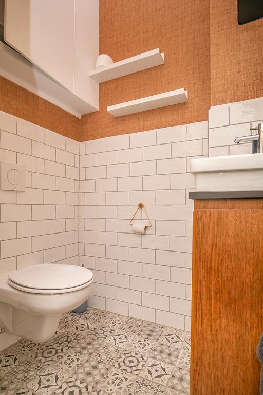 2e Verdieping: overloop, slaapkamer aan voorzijde, aan de achterzijde een badkamer met bad, douche, toilet en wastafel.