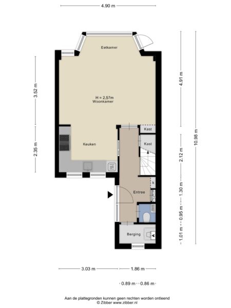 Begane grond: Entree, toilet, aan de voorzijde bevindt zich de wasruimte met CV-Ketel, meterkast, trapopgang naar de 1e verdieping met diepe trapkast. Woonkamer met ruime open keuken en aan de achterzijde het leefgedeelte met erker, deur naar tuin op het zuidwesten met berging en achterom.