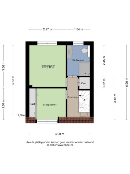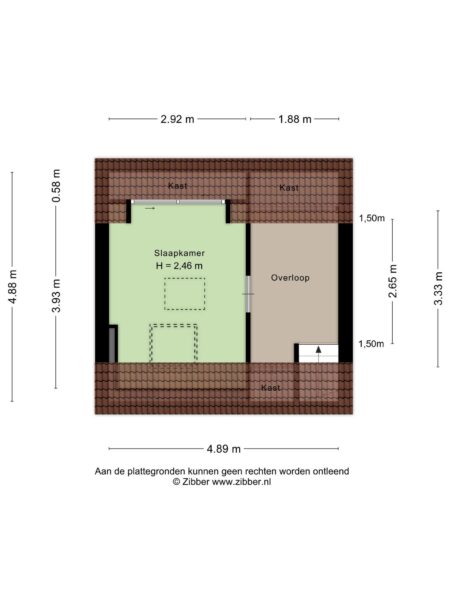 2e verdieping: ruime overloop met bergruimte, slaapkamer met een velux dakraam en een dakkapel, vlizotrap naar vliering.