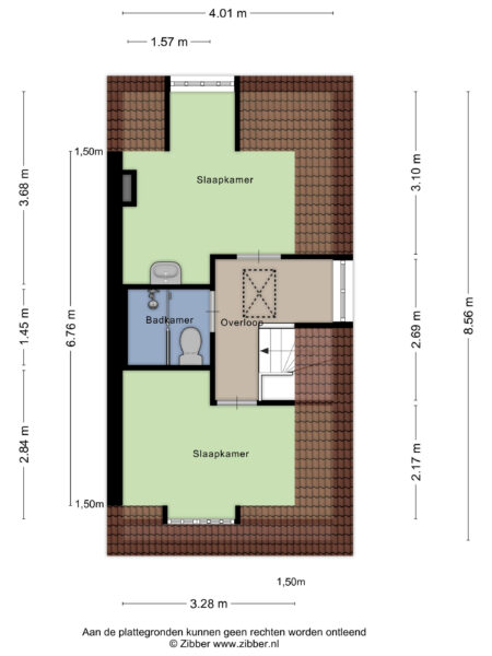Second floor: landing with second bathroom with shower and third toilet. At the rear, spacious second bedroom with washbasin, side window, dormer window and view of St. Bavo, the Bakenessertoren, St. Joseph’s Church and the Lutheran Church, and third bedroom at the front.