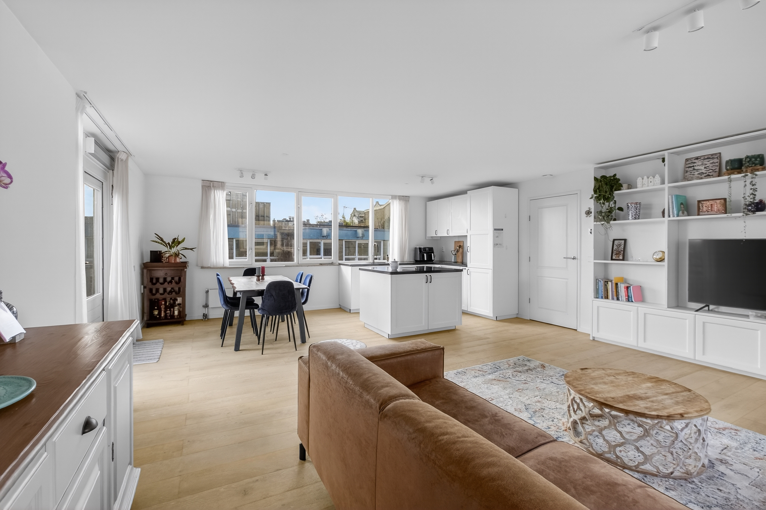 Aan het einde van de hal kom je in de lichte woon- en eetkamer met open keuken. Deze ruimte biedt een prettige leefomgeving met veel daglicht. Vanuit de woonkamer heb je direct toegang tot het terras op het zuidoosten, waar je heerlijk kunt genieten van de ochtend- en middagzon.