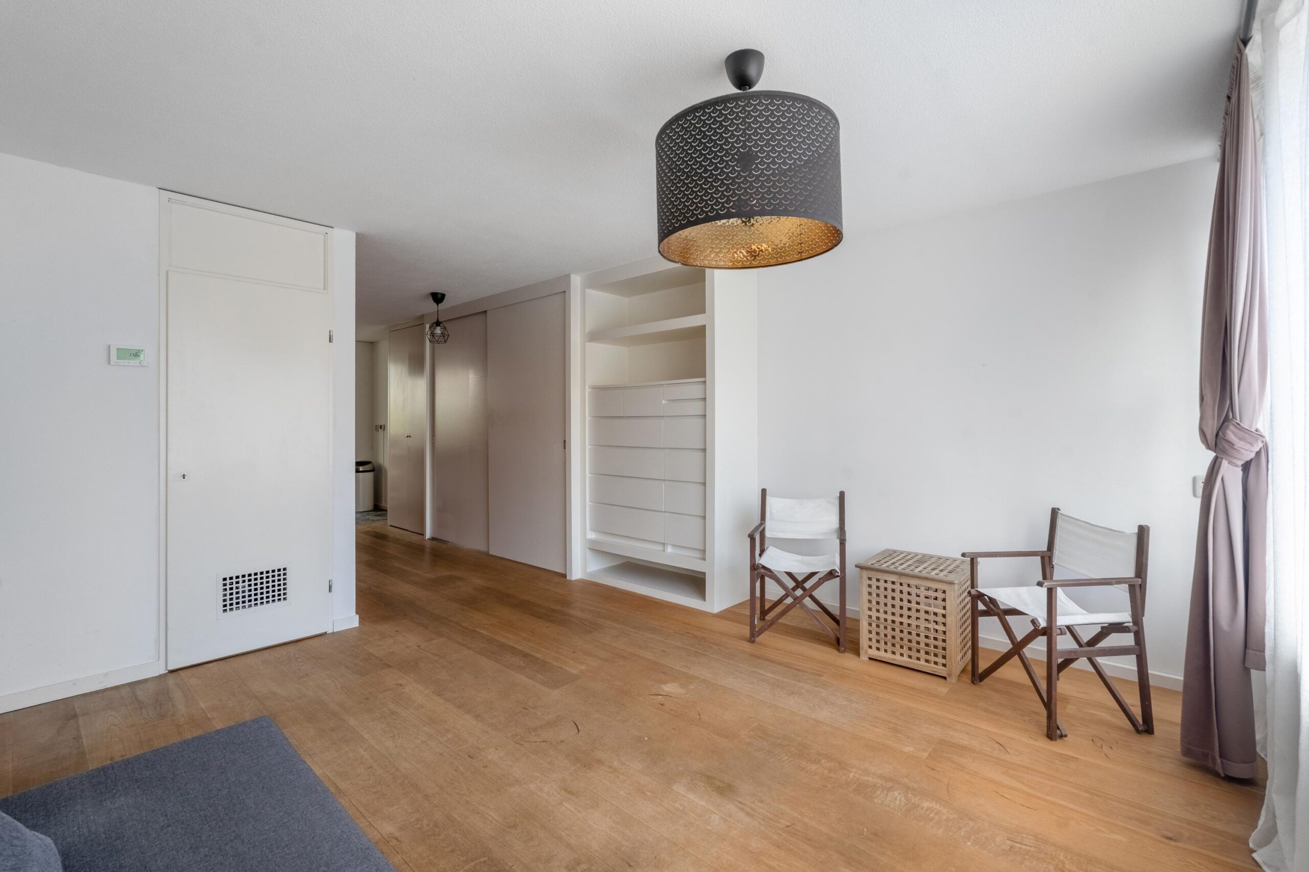 De slaapkamer aan de achterzijde biedt rust en privacy, met uitzicht op de tuin. Direct grenzend aan de slaapkamer ligt een tweede kamer, die zich uitstekend leent als werkplek, logeerkamer of kinderkamer.