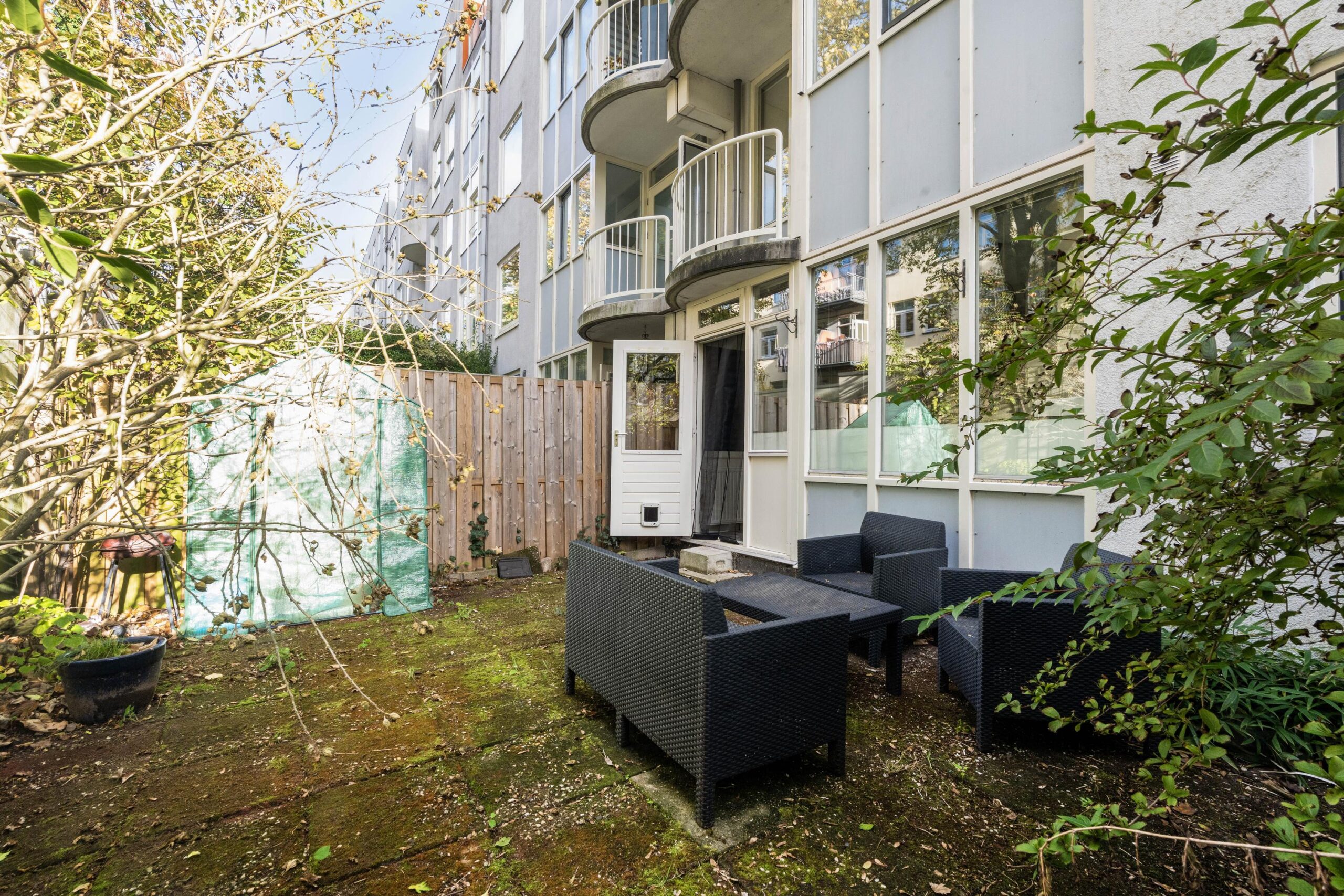 Via de tuin bereik je de berging, handig voor fietsen of extra opslag. Deze berging is ook toegankelijk via de gezamenlijke ingang op de begane grond van het gebouw.