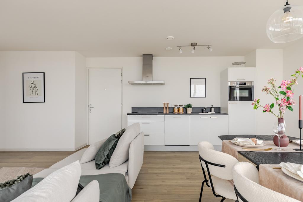 PUUR* Living in the building with the iconic Bougie, this former office building was completely transformed into a modern residential building in 2018. The large windows, some of which can be opened, offer beautiful views of the dunes and the old town. The complex has two lifts and there is a storage room in the basement, with the option to purchase your own parking space. Come and see for yourself and be surprised by this beautiful flat!
