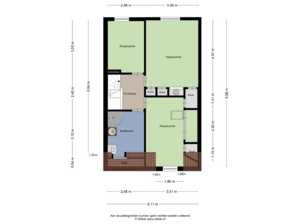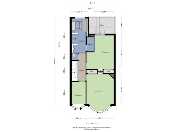 Deze etage, een grote overloop met daklicht en eiken vloerdelen. Aan de voorzijde 2 slaap-/logeer-/werkkamers, met vaste kasten. De tweede badkamer is voorzien van een douche, wastafel en toile en aansluiting voor wasmachine/droger.