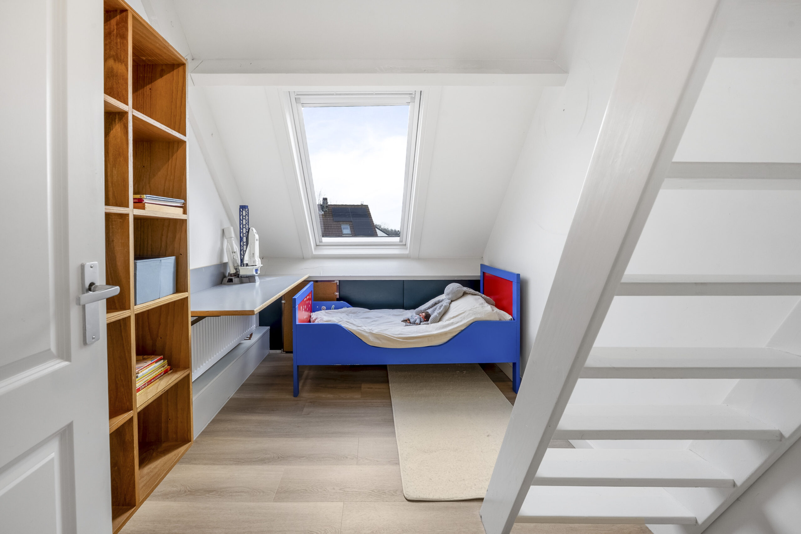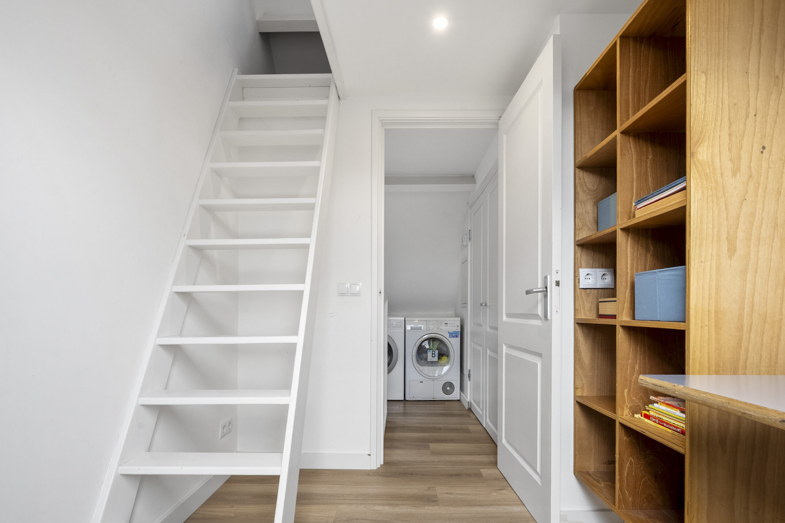 2e Verdieping: overloop met wasmachine/droger aansluiting, dakraam en kast met cv-ketel en mechanische ventilatie, slaapkamer aan voorzijde met dakkapel, bergruimte en trap naar slaapvide met 2 dakramen, slaapkamer aan voorzijde met dakraam, bergruimte en trap naar slaapkamer met dakraam