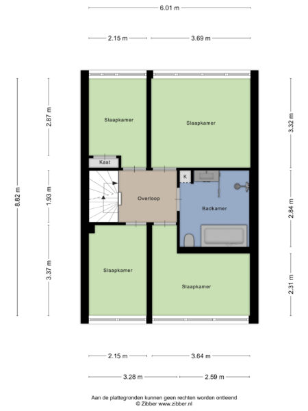 Eerste verdieping: vier slaapkamers, luxe badkamer met ligbad, regendouche, wastafelmeubel en tweede toilet.