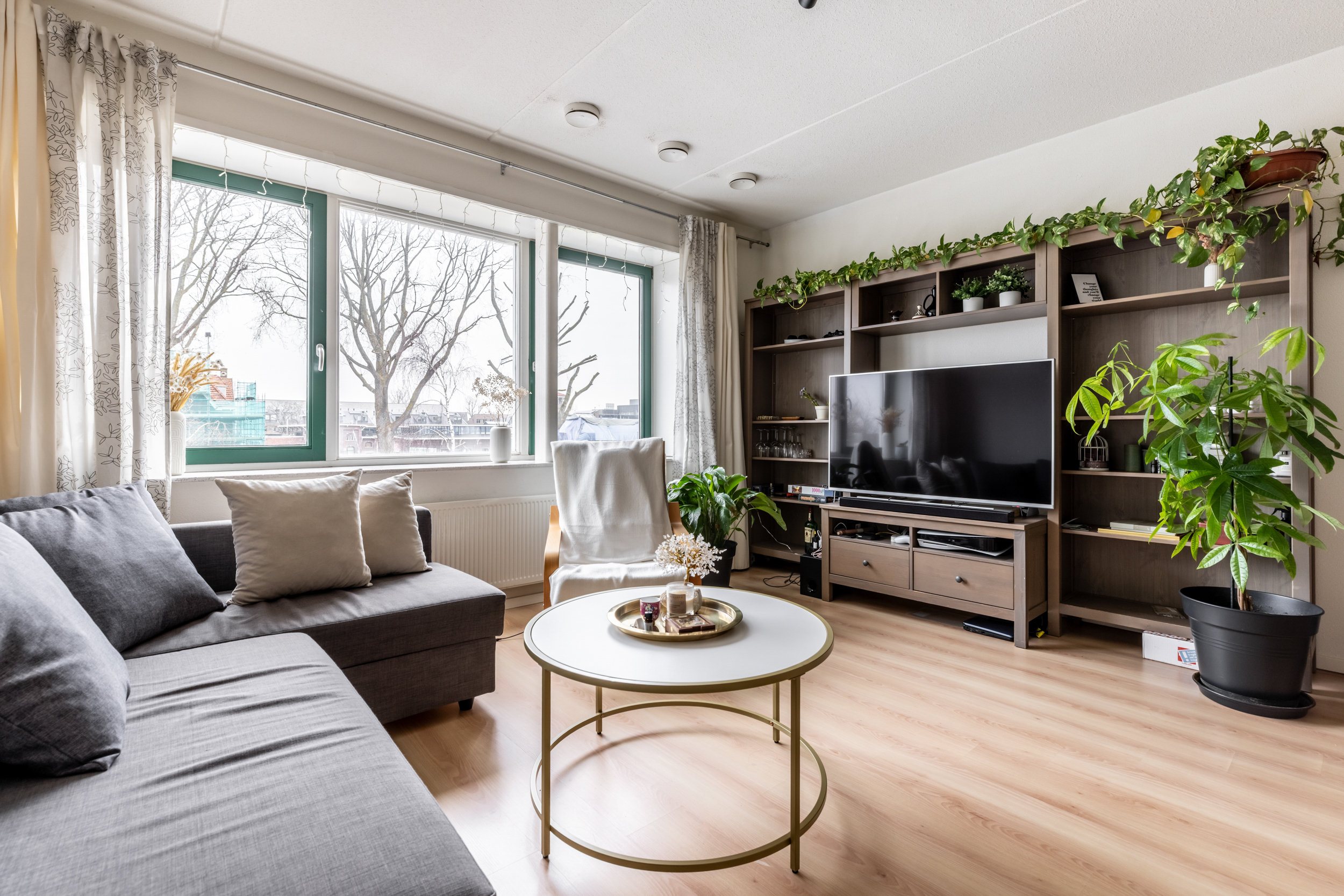 PUUR* living presents this well-maintained, beautifully finished 3-room apartment of approximately 73 m² with unobstructed views over the characteristic Slachthuis district, located on the second floor of a well-maintained complex from 2007 with energy label A. This bright home features a spacious living room with open kitchen, two comfortable bedrooms, and a modern bathroom with both a bathtub and shower. The light laminate flooring and neat finish immediately give it an inviting and fresh look. With its own storage room and access to the communal roof terrace, this apartment offers not only indoor space but also pleasant outdoor possibilities. The location and finish make this an attractive and immediately habitable home in the heart of Haarlem.