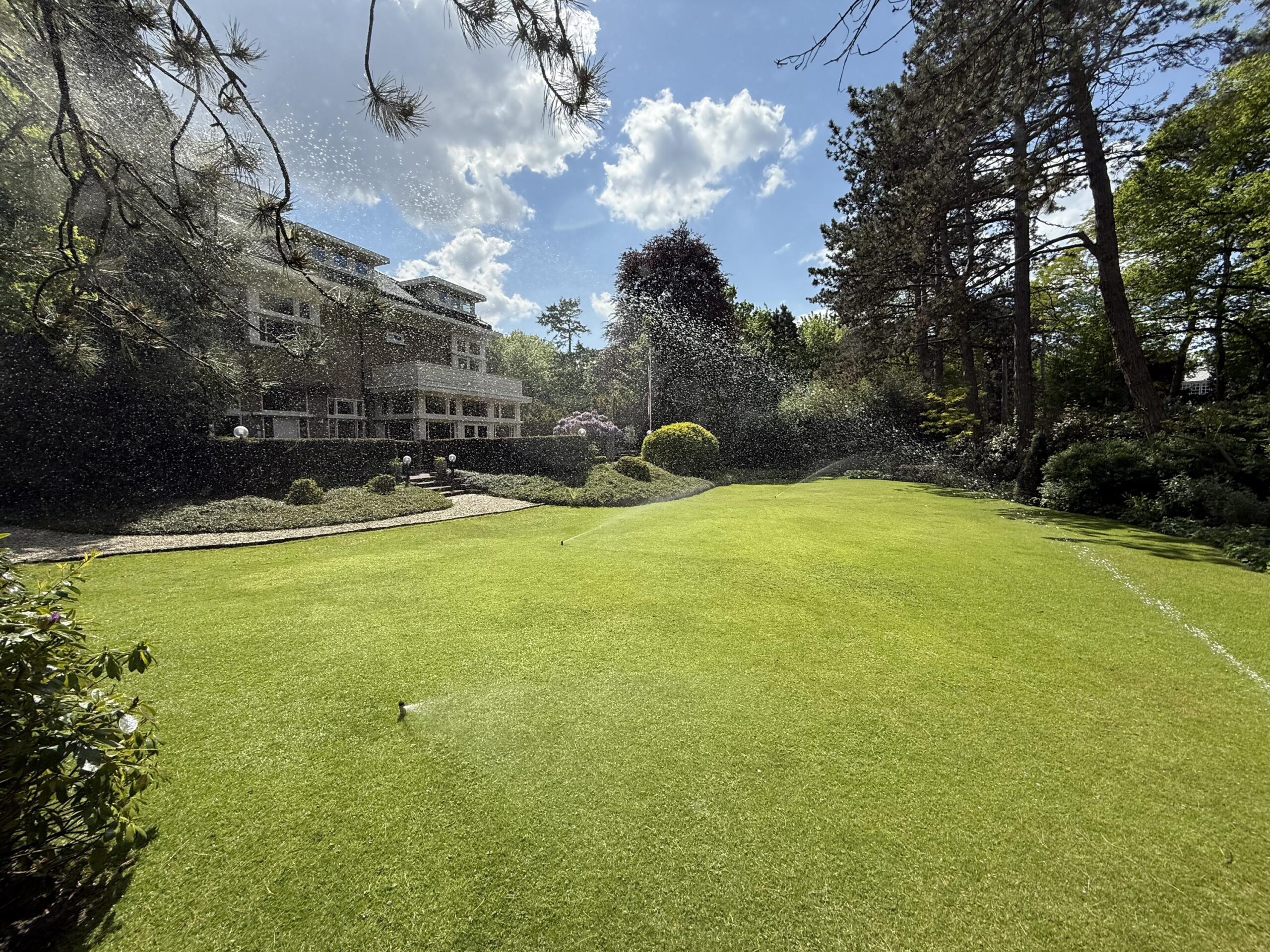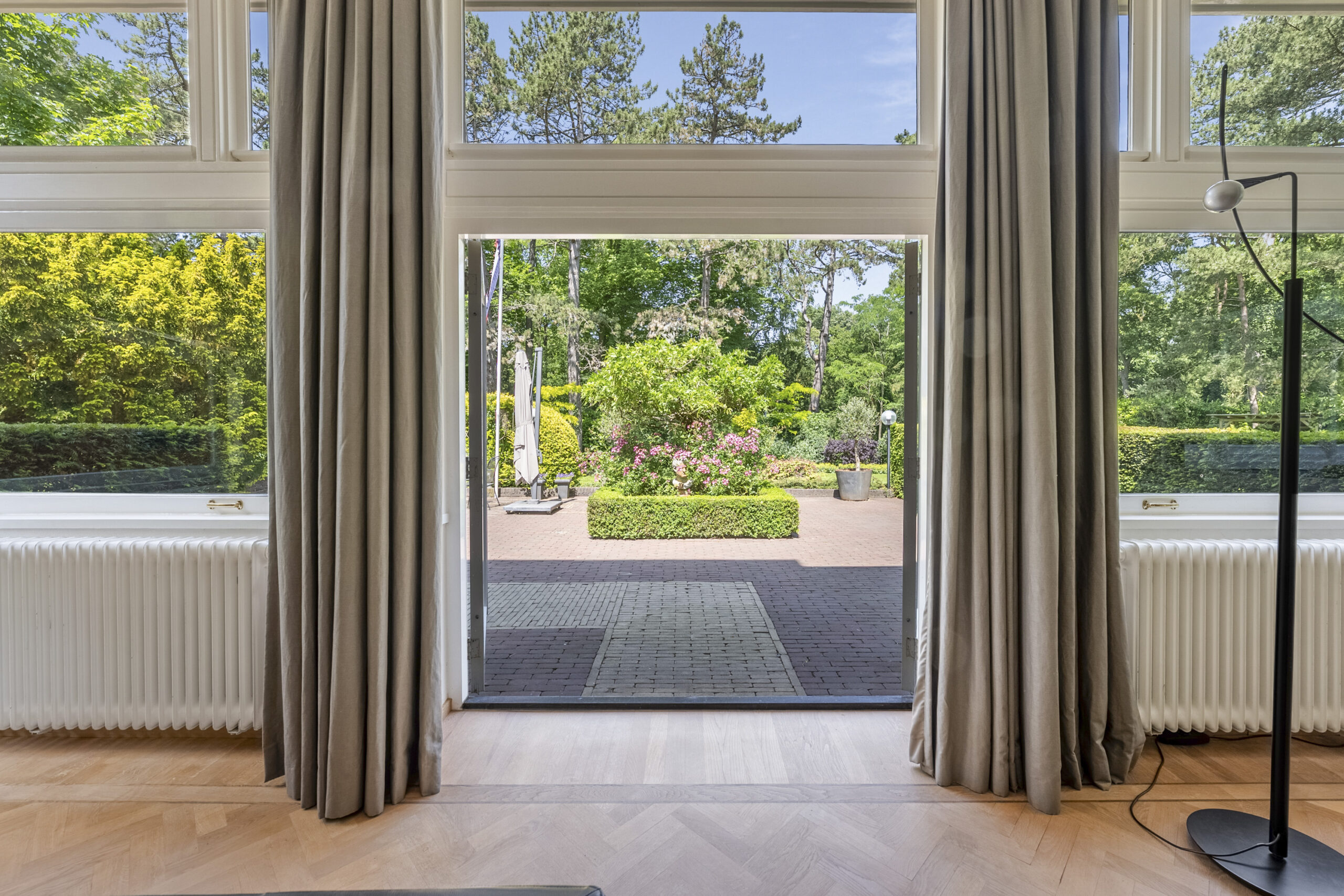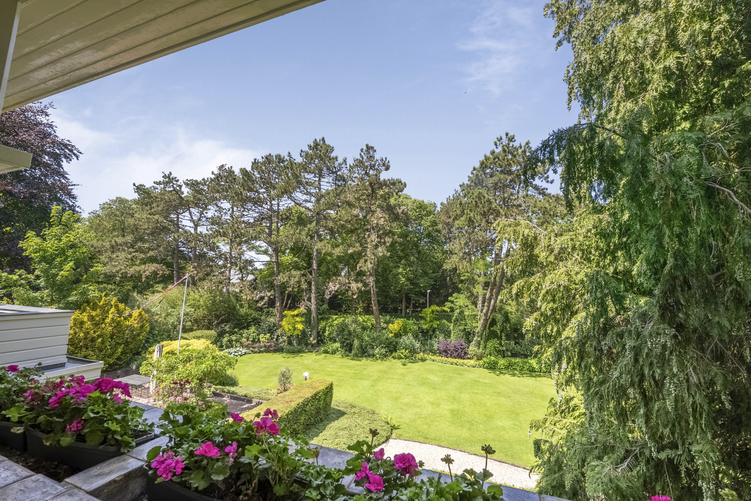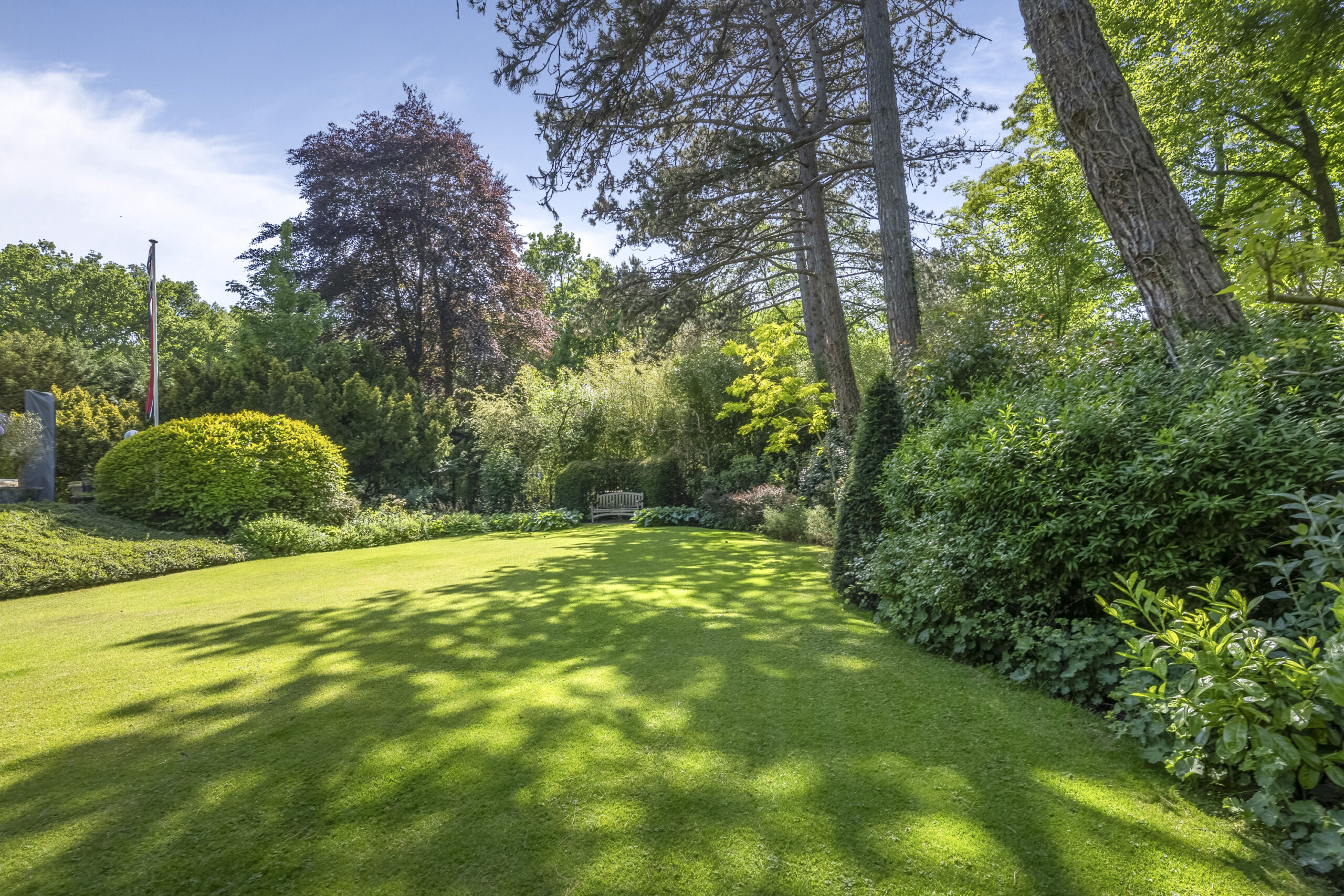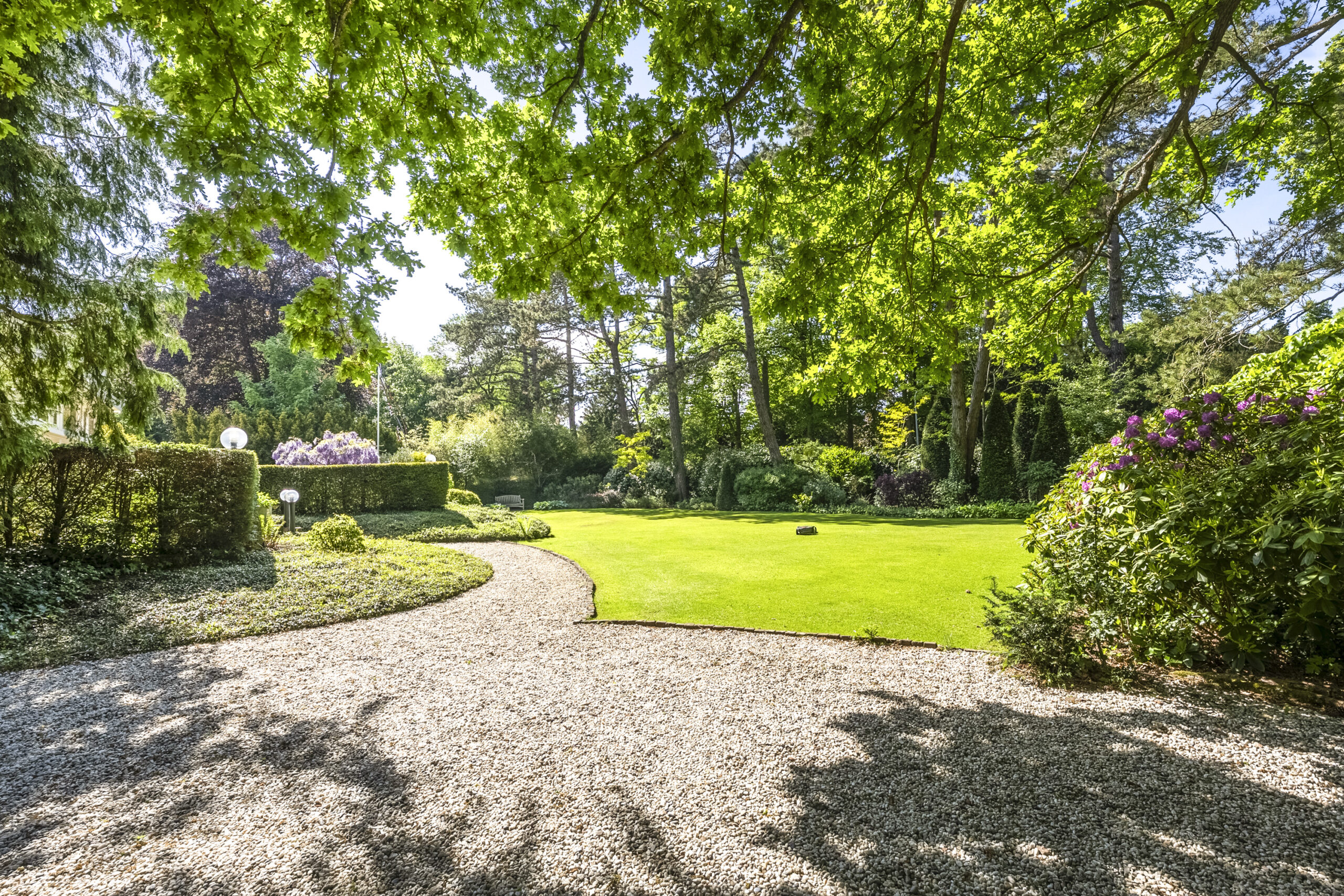 Via een lange oprijlaan, afgesloten met een elektrisch hek voorzien van videofooninstallatie, bereik je de villa. De woning heeft een verrassende indeling en is volledig georiënteerd op de tuin, wat zorgt voor een prachtig uitzicht op het groen vanuit vrijwel iedere ruimte.