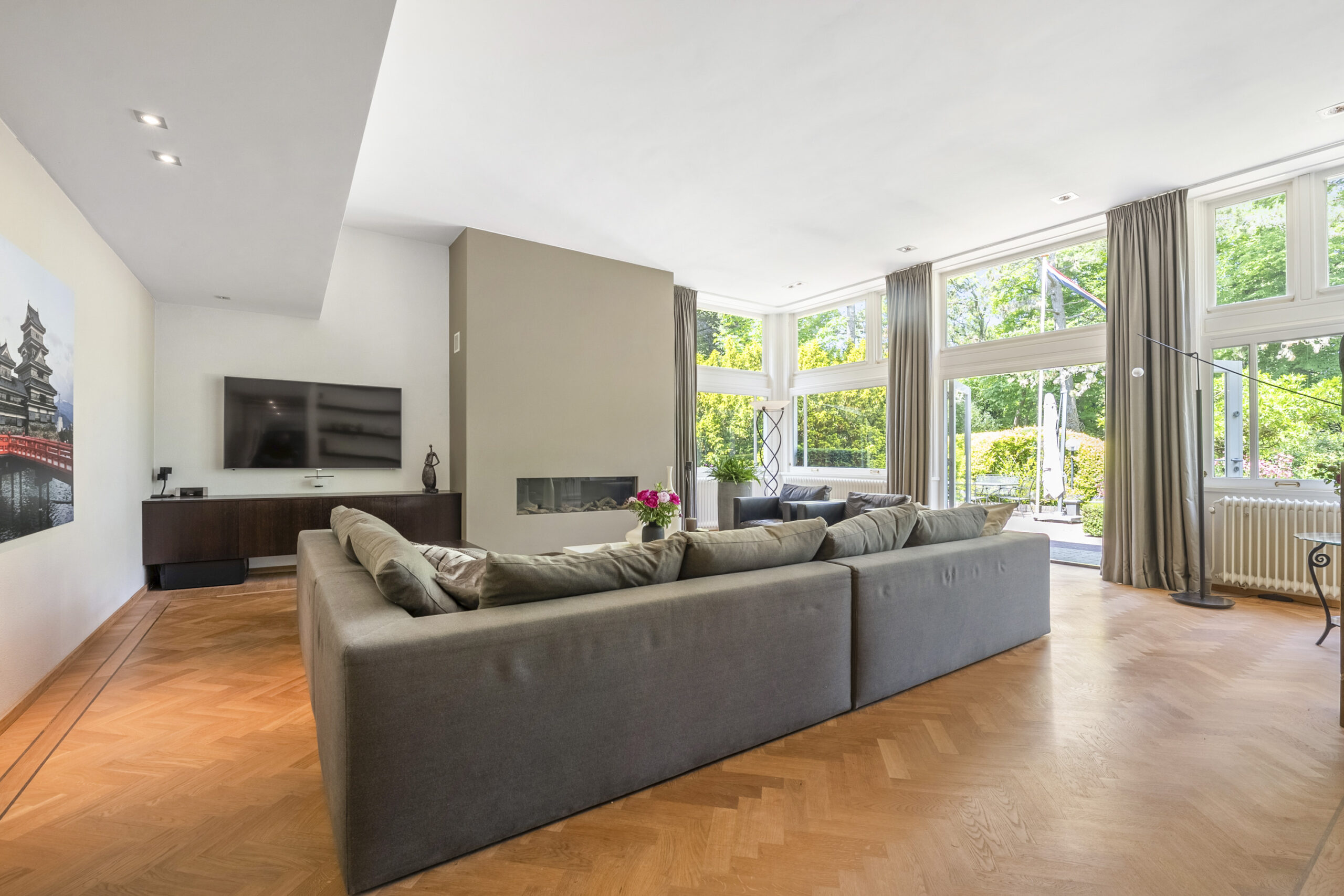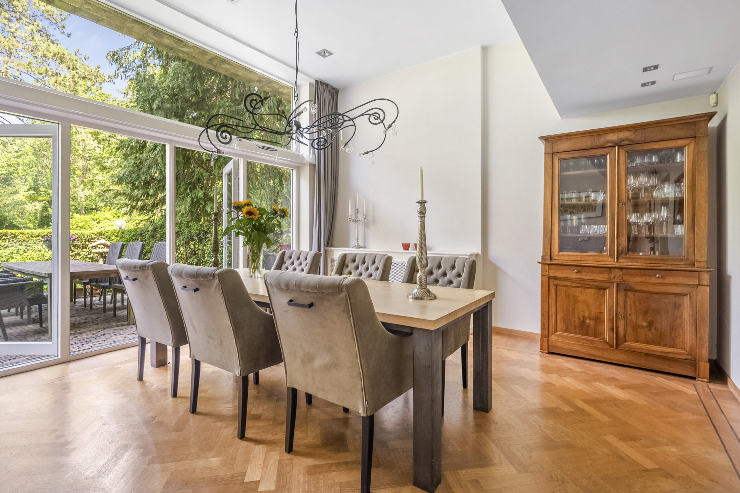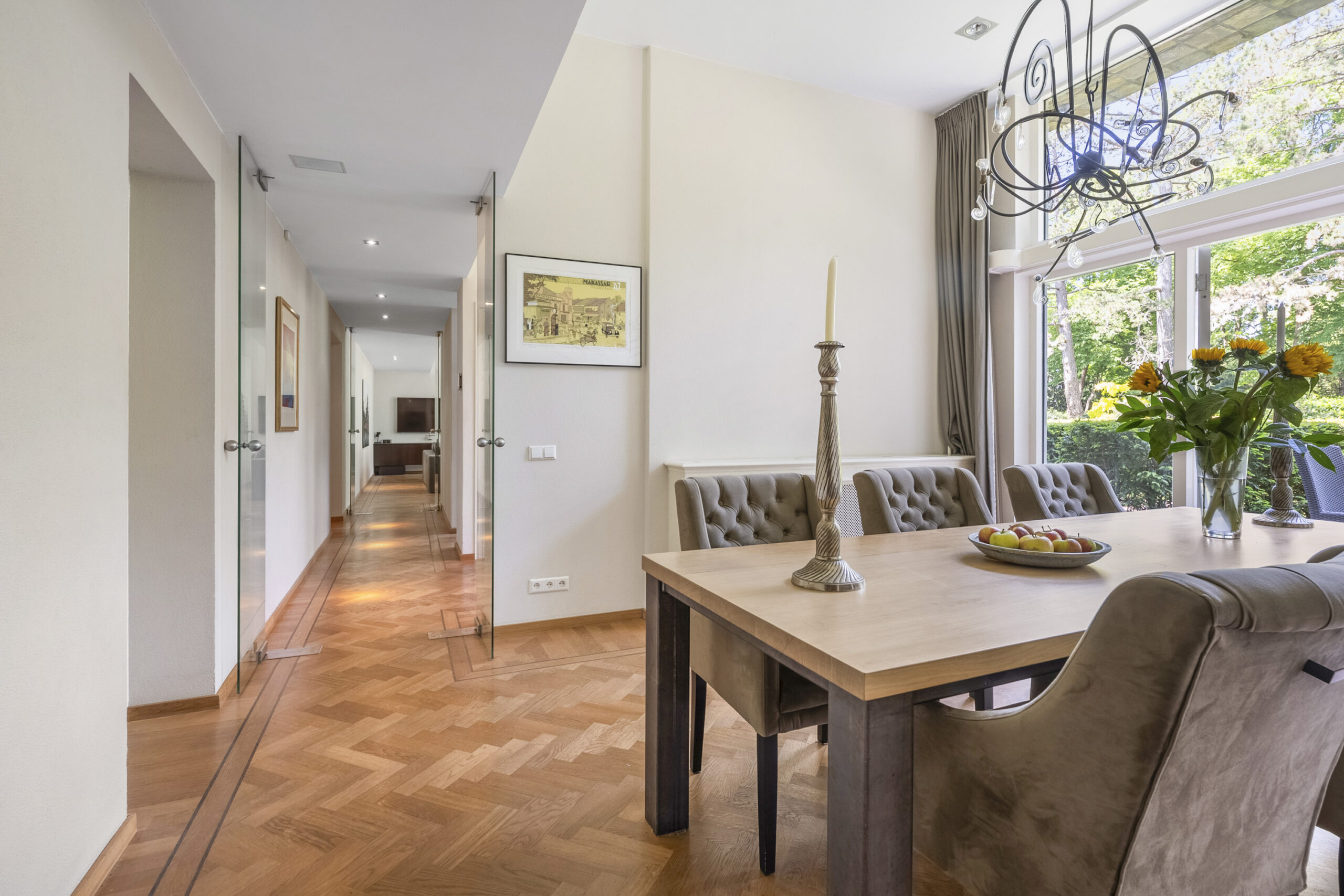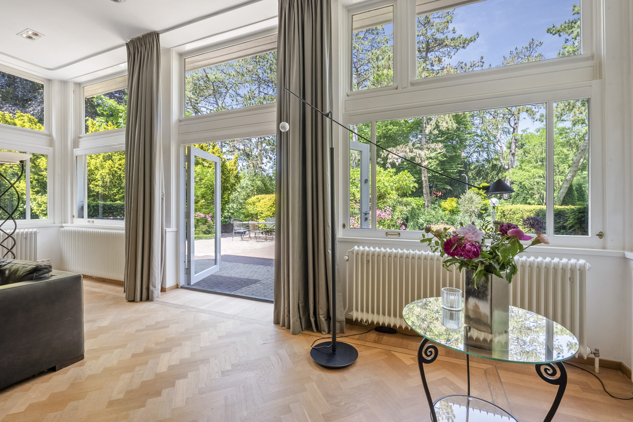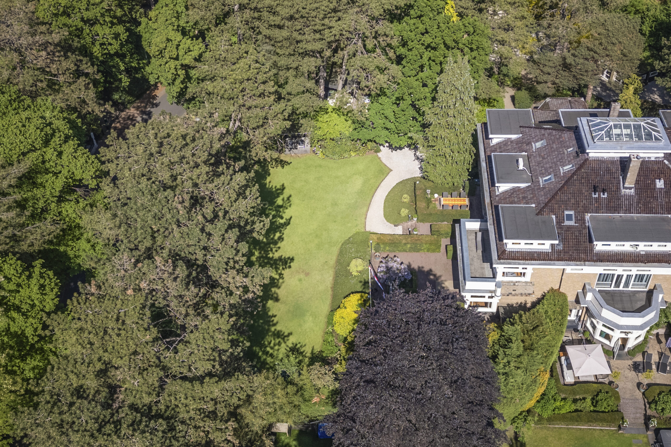 Via een lange oprijlaan, afgesloten met een elektrisch hek voorzien van videofooninstallatie, bereik je de villa. De woning heeft een verrassende indeling en is volledig georiënteerd op de tuin, wat zorgt voor een prachtig uitzicht op het groen vanuit vrijwel iedere ruimte.
