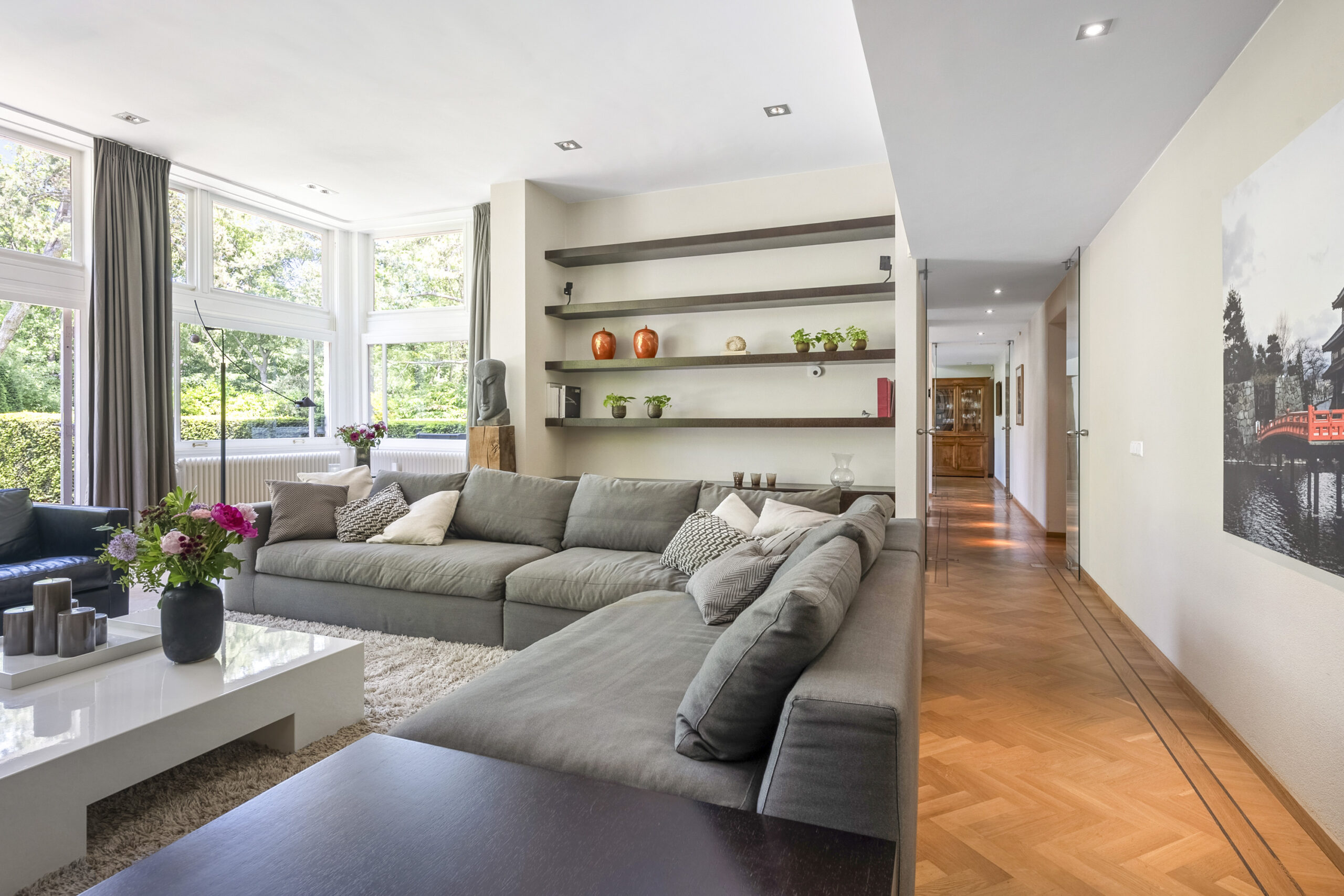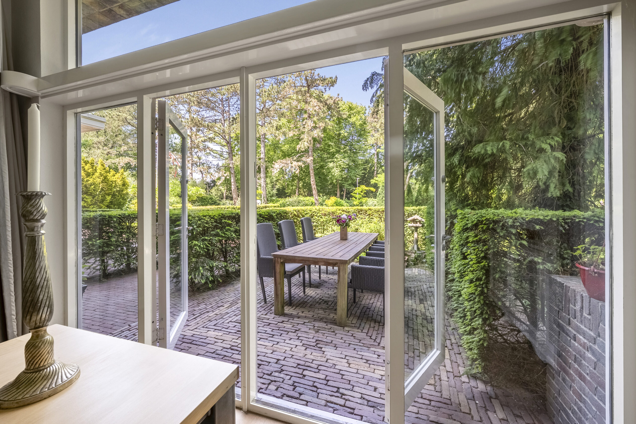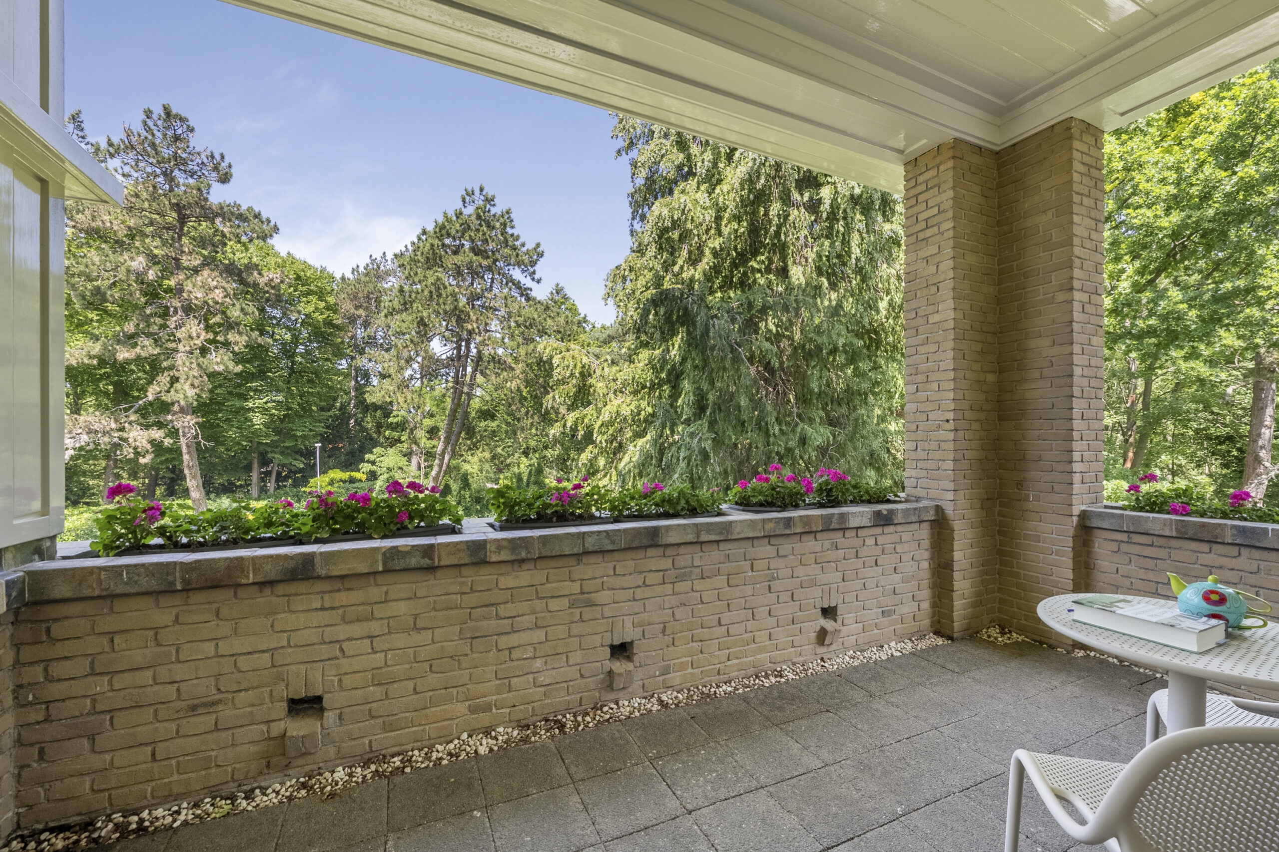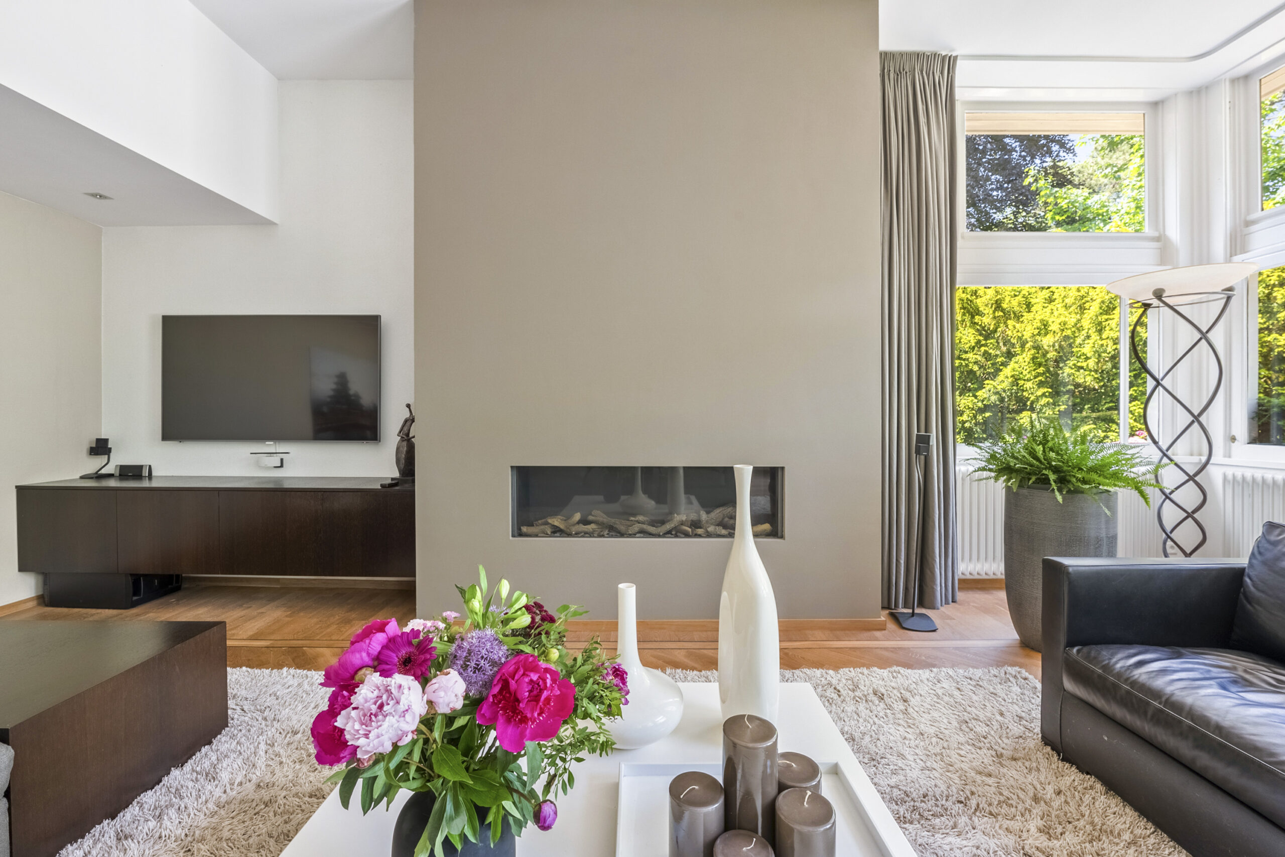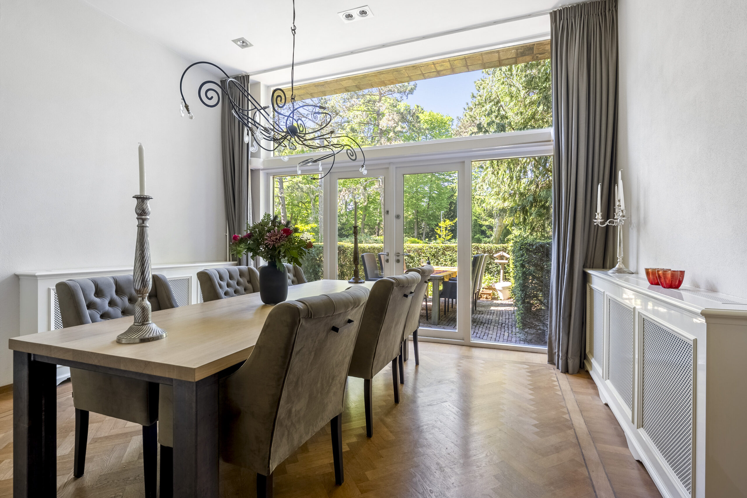 Via een lange oprijlaan, afgesloten met een elektrisch hek voorzien van videofooninstallatie, bereik je de villa. De woning heeft een verrassende indeling en is volledig georiënteerd op de tuin, wat zorgt voor een prachtig uitzicht op het groen vanuit vrijwel iedere ruimte.