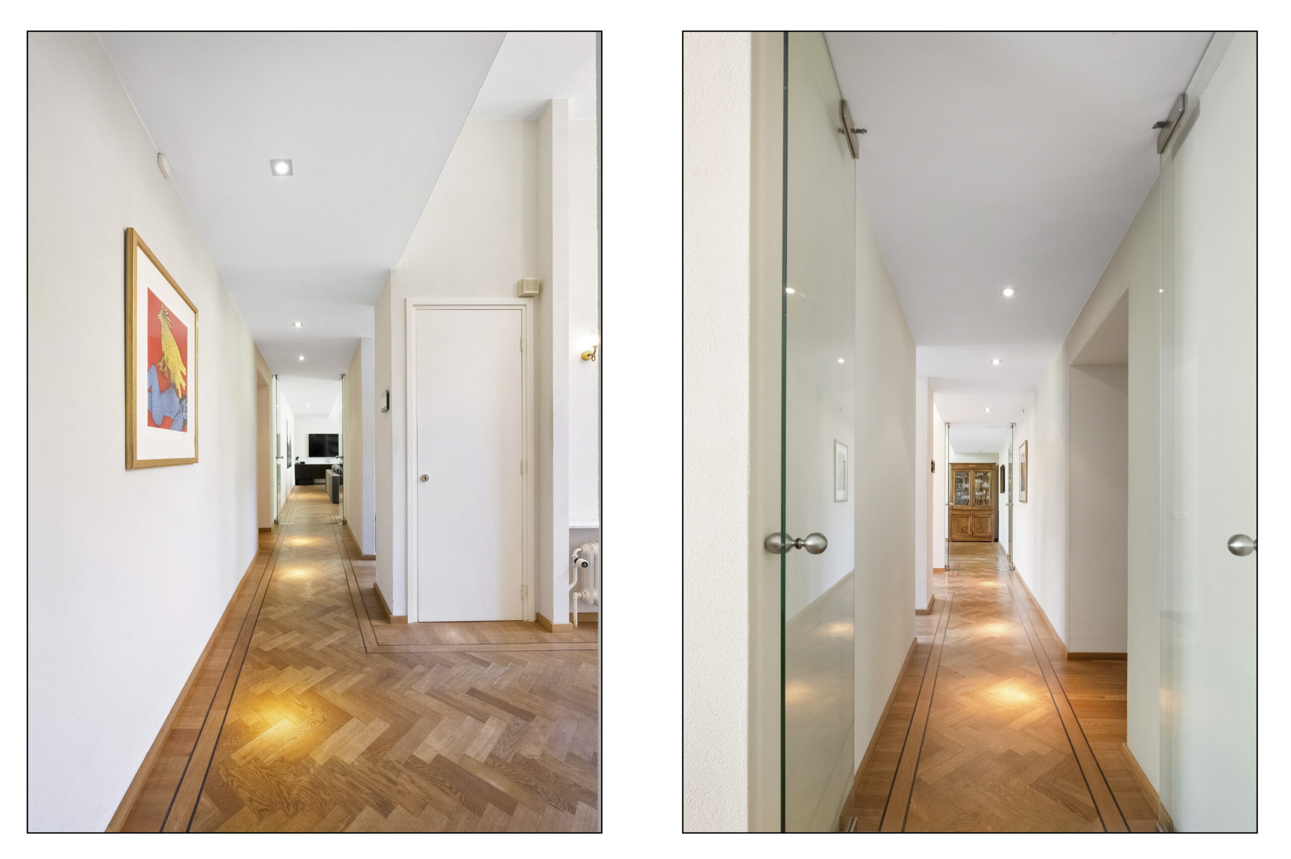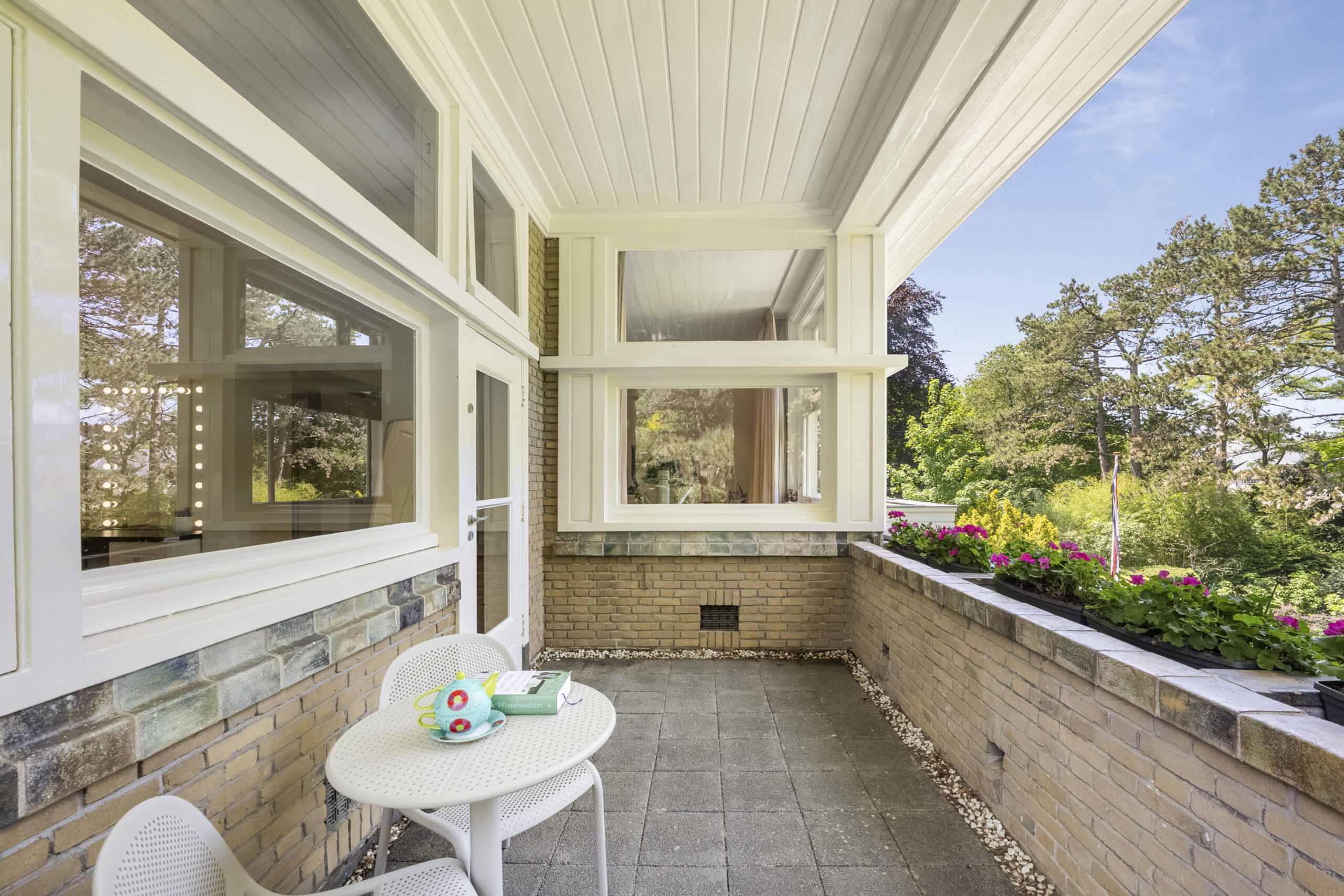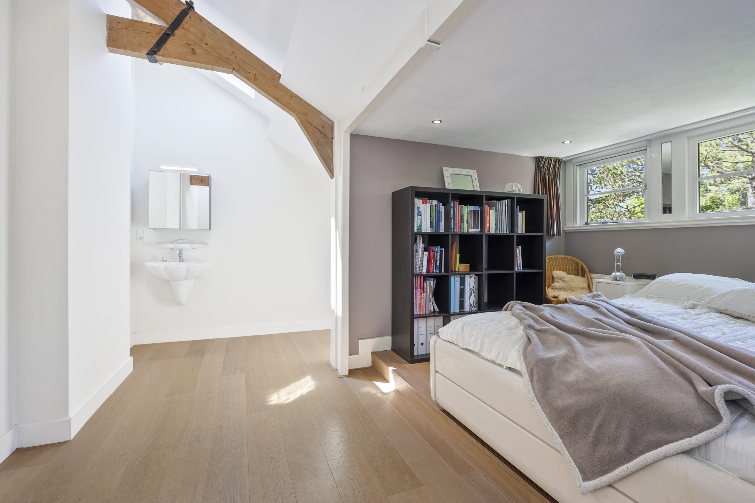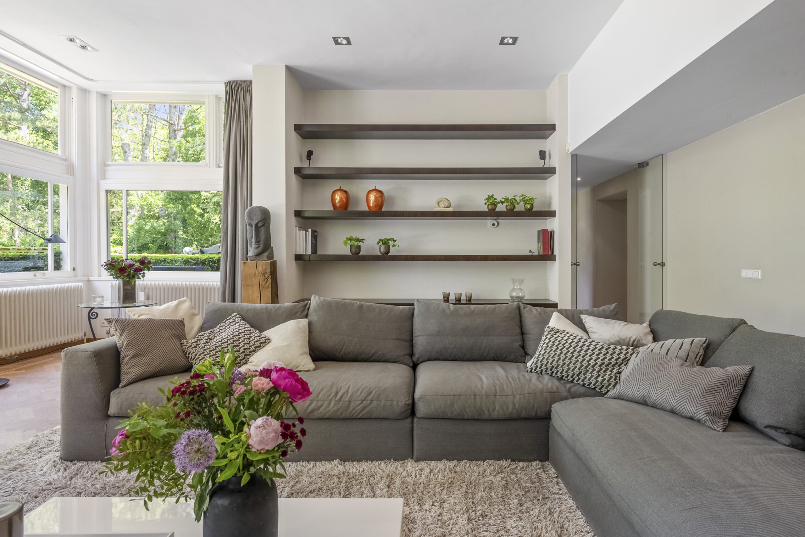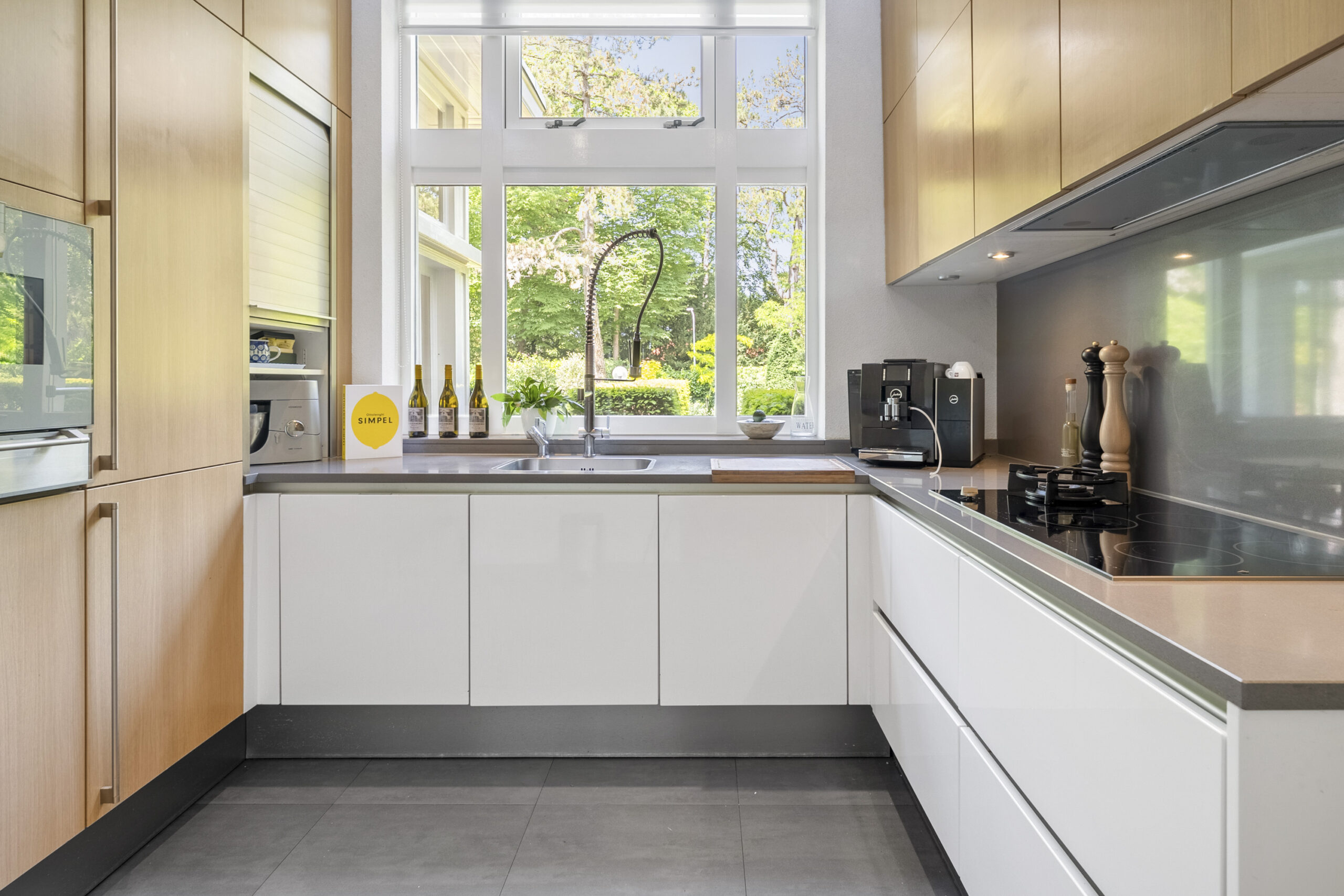 Via een lange oprijlaan, afgesloten met een elektrisch hek voorzien van videofooninstallatie, bereik je de villa. De woning heeft een verrassende indeling en is volledig georiënteerd op de tuin, wat zorgt voor een prachtig uitzicht op het groen vanuit vrijwel iedere ruimte.