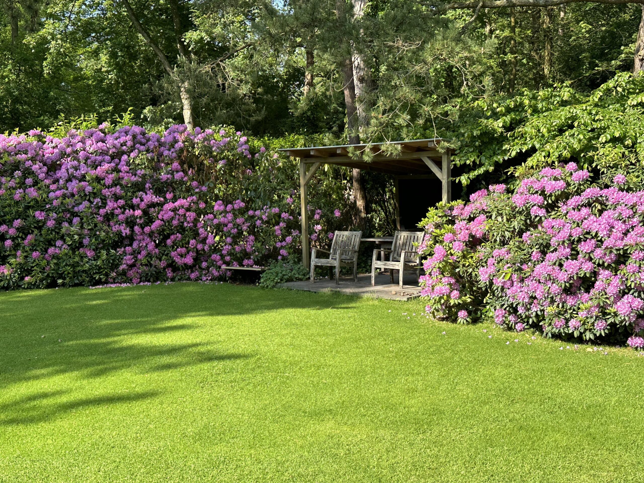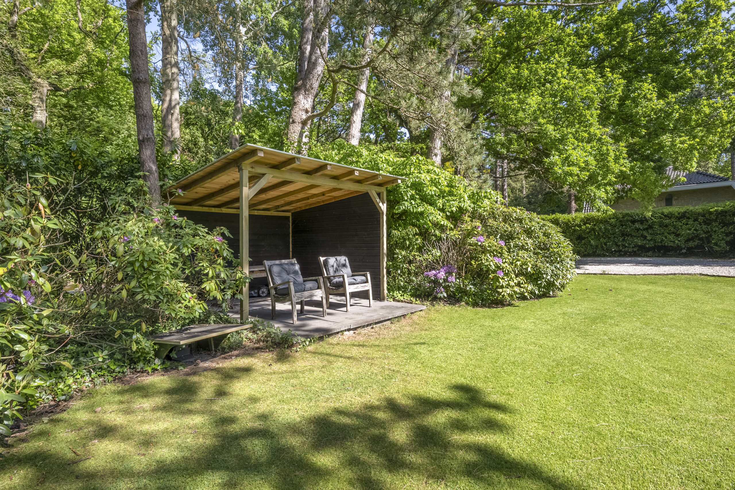 De fraai aangelegde tuin ligt perfect op de zon en wordt omsloten door hoge bomen en weelderige heesters waardoor er in de tuin alsmede in het huis veel privacy is. De zonnige tuin is voorzien van diverse terrassen, een houten berging, ruime parkeergelegenheid en een dubbele stenen garage.
