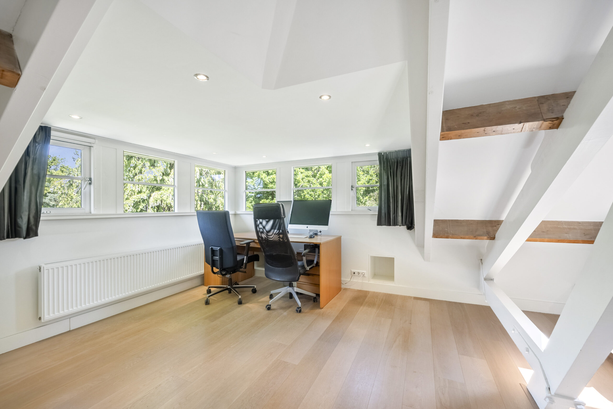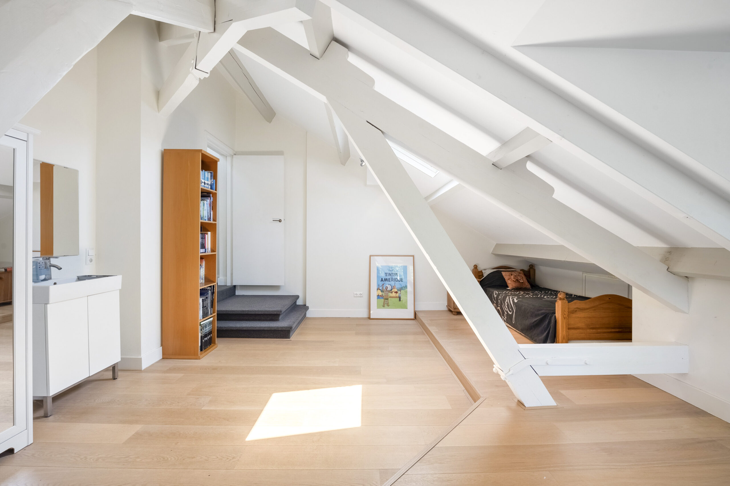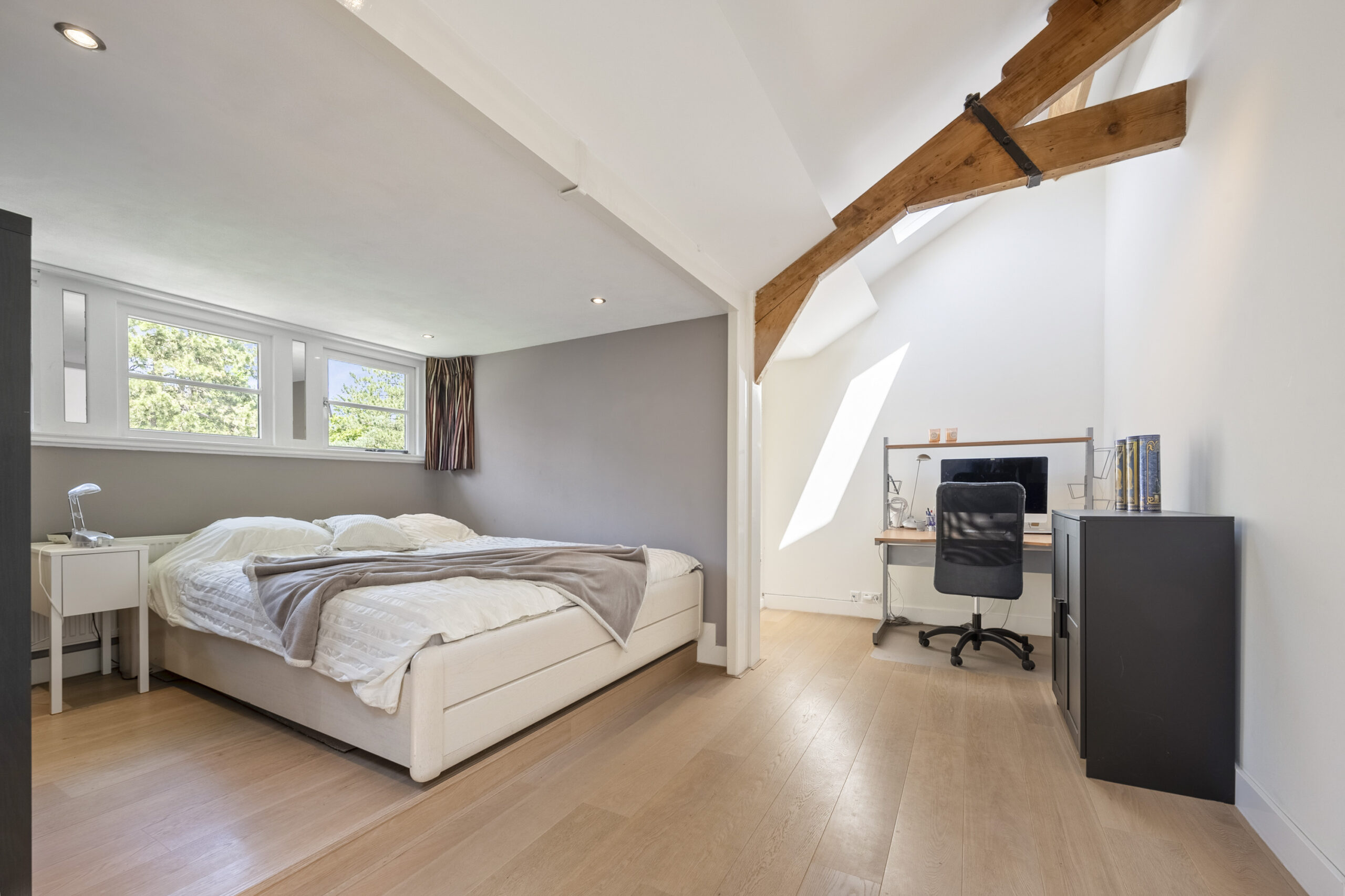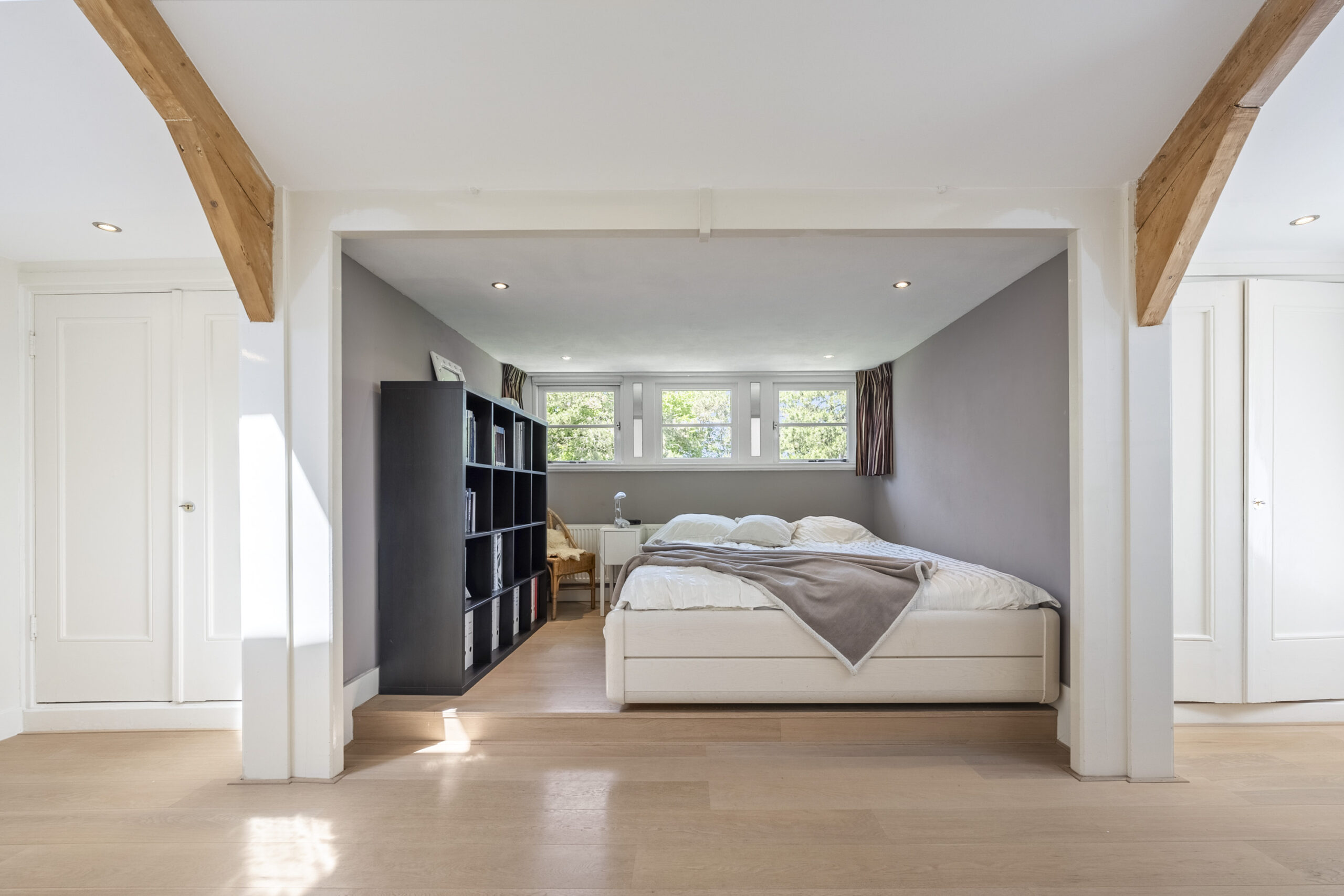 2e Verdieping: overloop met dakraam en vlizotrap naar bergvliering voorzien van cv-ketel en warmtepomp, slaapkamer met extra dakraam, zijkamer voorzien van extra diepe vaste kasten, 2 extra dakramen en wastafel, slaapkamer met extra dakraam en wastafelmeubel