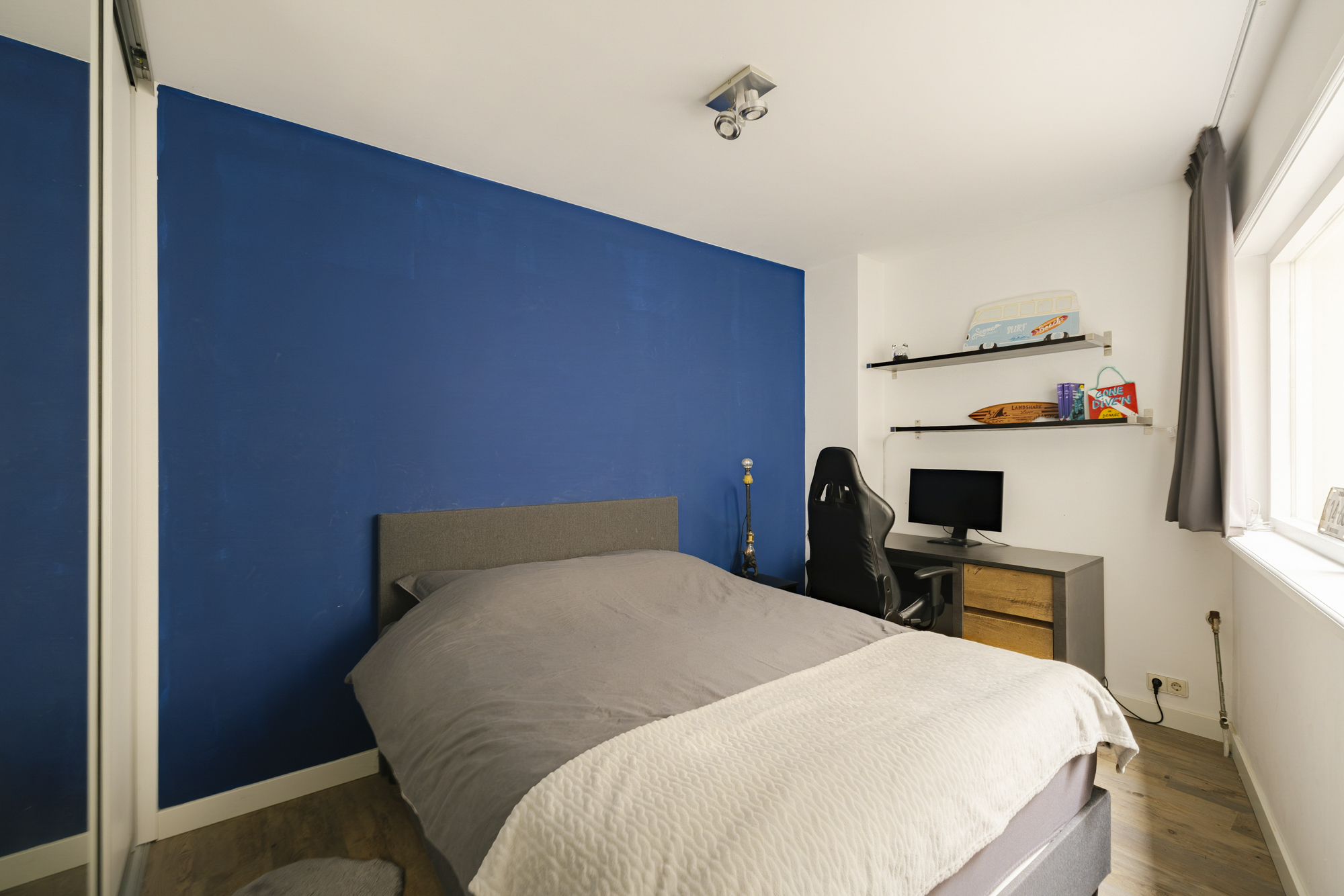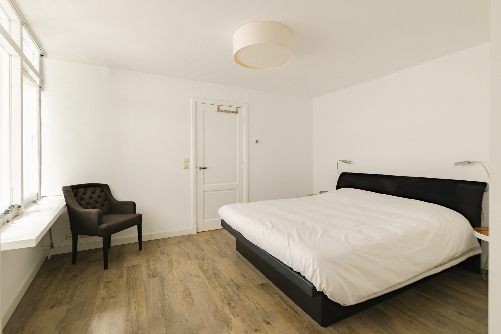 De royale hoofdslaapkamer biedt via een gang toegang tot de patio/atrium tuin — een rustige en beschutte buitenruimte. De tweede slaapkamer is multifunctioneel in te richten als werk-, studie-, logeer- of kleedkamer. Beide kamers beschikken over inbouwkasten en zijn afzonderlijk bereikbaar via de hal. Door de vele ramen heb je ook in beide slaapvertrekken veel licht vanuit buiten.