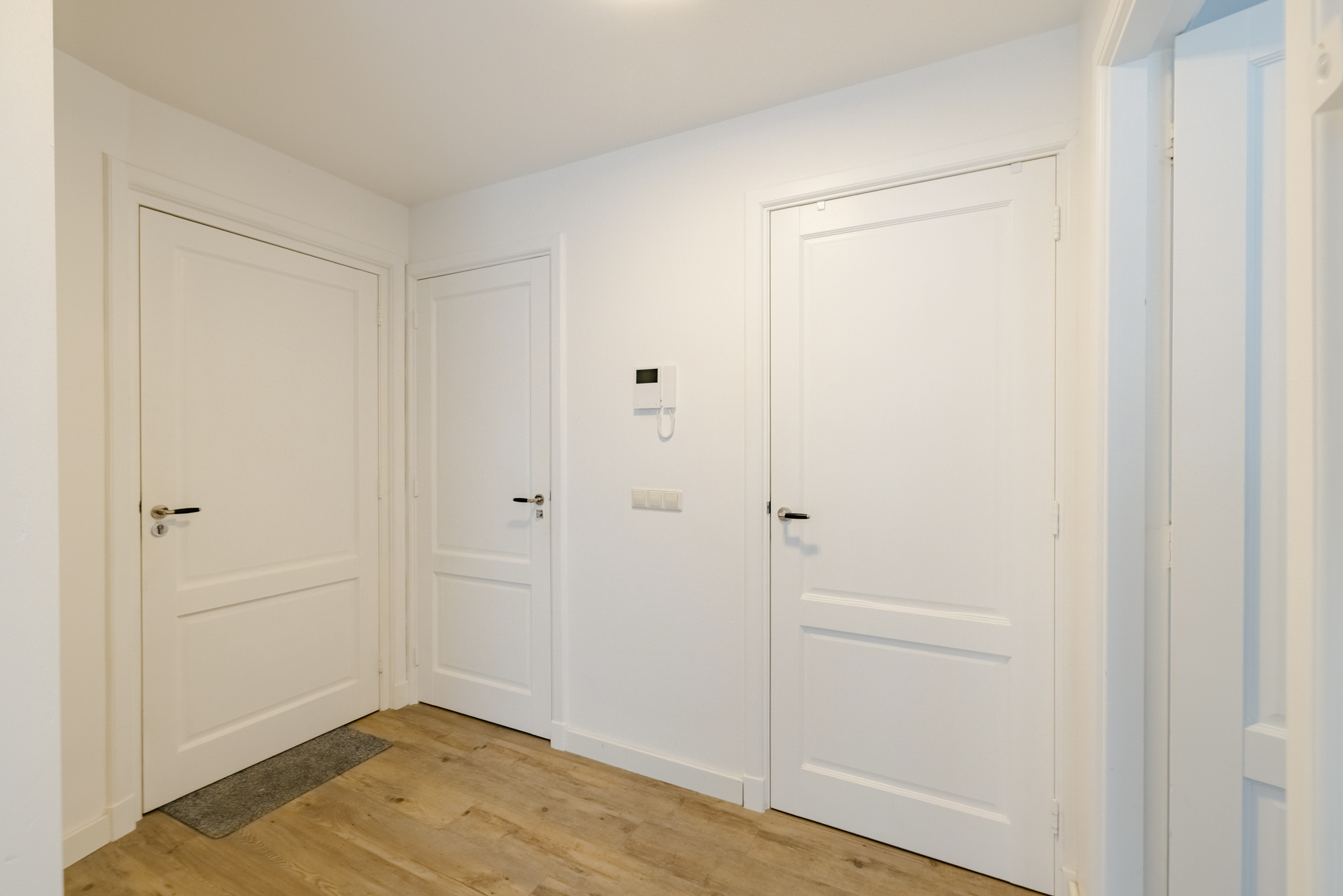 Representative communal entrance with access to the storage rooms of the three apartments. You reach the apartment via the private storage room.