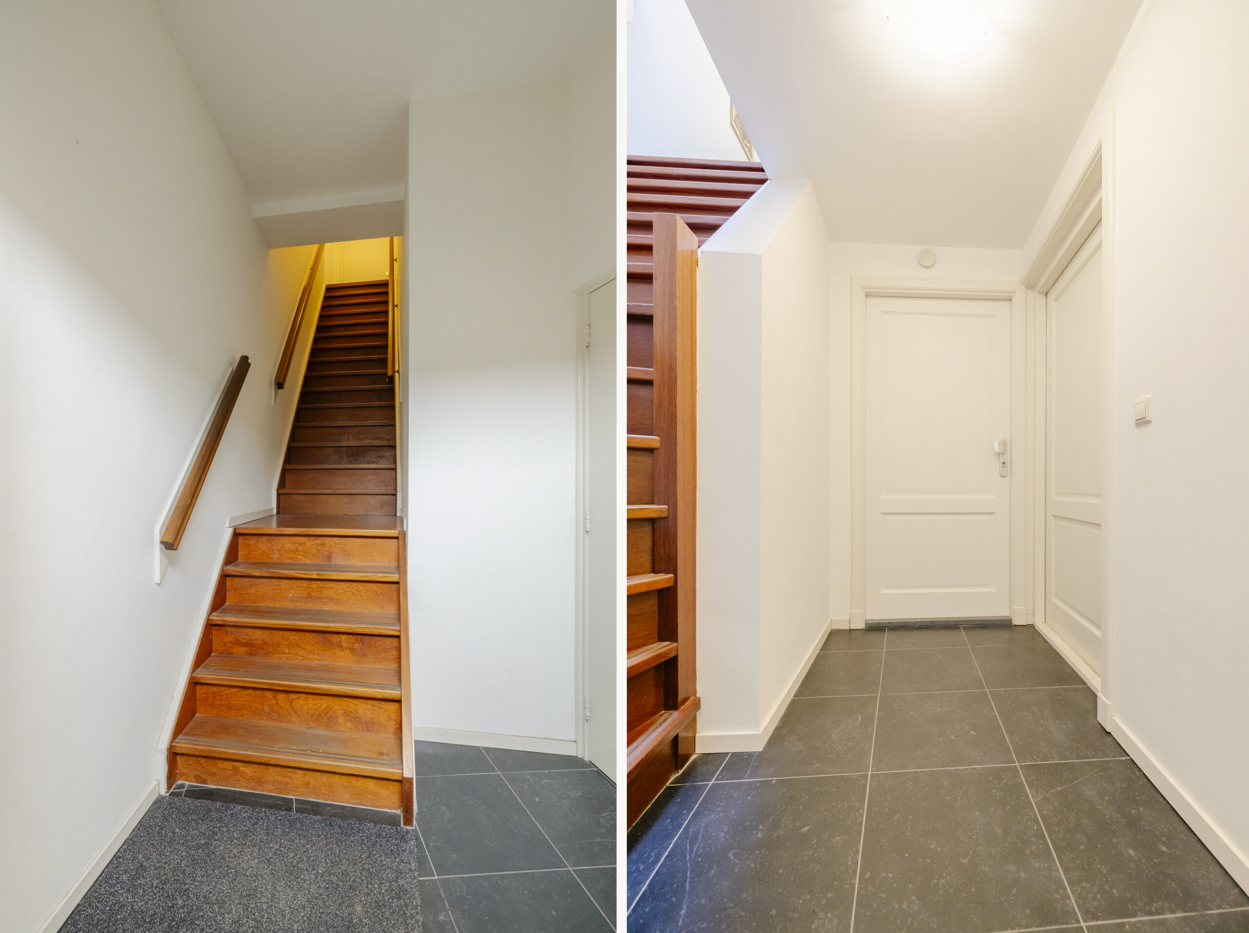 Representatieve gezamenlijke entree met toegang tot de bergingen van de drie appartementen. Via de privéberging bereikt u het appartement.
