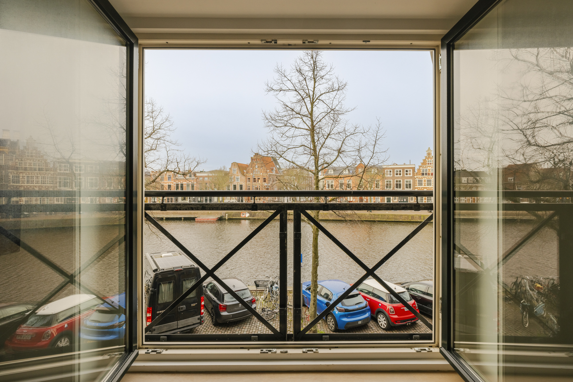 The spacious living room extends across the entire width of the property (approx. 7 metres) and has three large windows at the front. The result? A magnificent, unobstructed view of the Spaarne river that never gets boring.