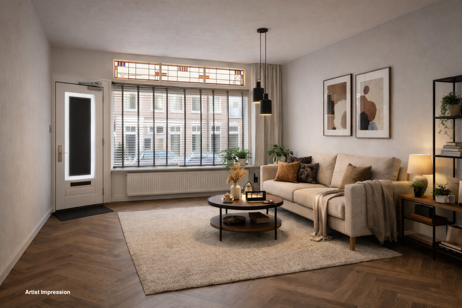 De woning beschikt momenteel over een riante leefruimte, een ruime keuken en een slaapkamer in de aanbouw. Door de gelijkvloerse indeling en de fijne lichtinval is dit na modernisatie een bijzonder comfortabel stadsappartement. De knusse stadstuin op het zuiden biedt een rustige plek om te ontspannen, midden in de stad.