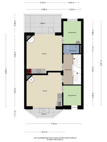 Aan de voorzijde openslaande deuren naar balkon en aan de achterzijde een terras (op het zuiden)