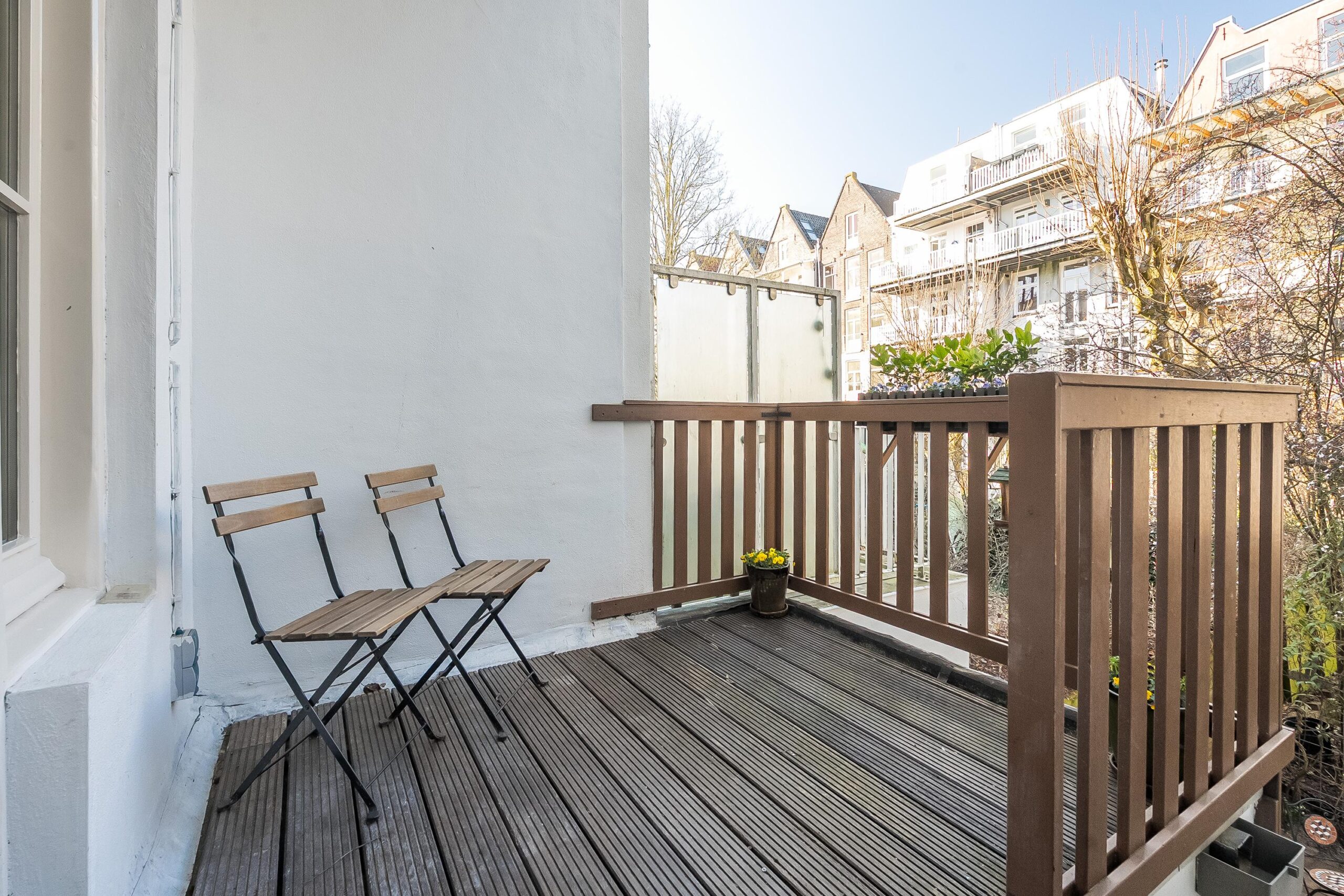 Met een prachtige houten vloer door de gehele woning, op maat gemaakte gordijnen, stijlvolle inbouwkasten en veel originele details komt het karakter van dit appartement goed naar voren. De combinatie van een lichte woonkamer aan de voorzijde met twee Franse balkons en een eetkamer met open keuken aan de achterzijde zorgt voor een ideale indeling en een fijne verbinding met de buitenruimte.