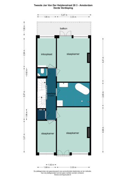 Via de gemeenschappelijke voordeur bereikt u de entree van het appartement op de tweede verdieping. Met de trap bereikt u de derde verdieping waar zich maar liefst vier goed bemeten slaapkamers bevinden. Eveneens bevind zich hier de badkamer die in 2024 volledig gerenoveerd is en een moderne uitstraling heeft met een ligbad, een ruime inloopdouche en aansluitingen voor zowel een wasmachine als een droger. Aan de achterzijde van deze verdieping vindt u een balkon.