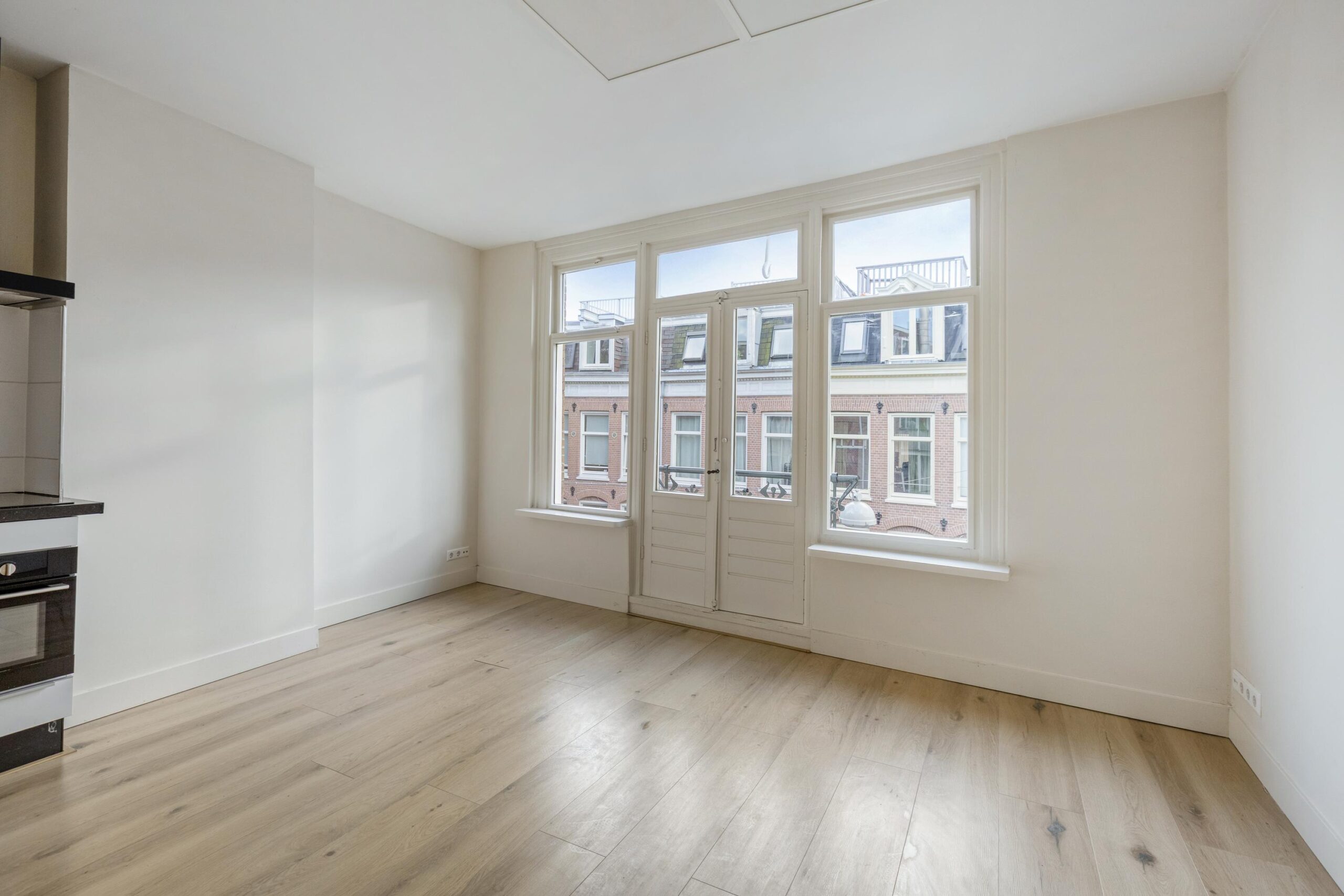 Via het gemeenschappelijke trappenhuis bereik je het appartement op de derde verdieping. Aan de voorzijde bevindt zich de lichte woonkamer met 3 grote raampartijen voorzien van vacuümglas, wat zorgt voor uitstekende warmte- én geluidsisolatie. De open keuken sluit mooi aan op de woonkamer en biedt de mogelijkheid tot het creëren van een fijne, compacte leefruimte. De slaapkamer bevindt zich aan de achterzijde en geeft toegang tot het balkon van circa 2 m². De badkamer is modern ingericht en voorzien van een douche, wastafel en toilet.