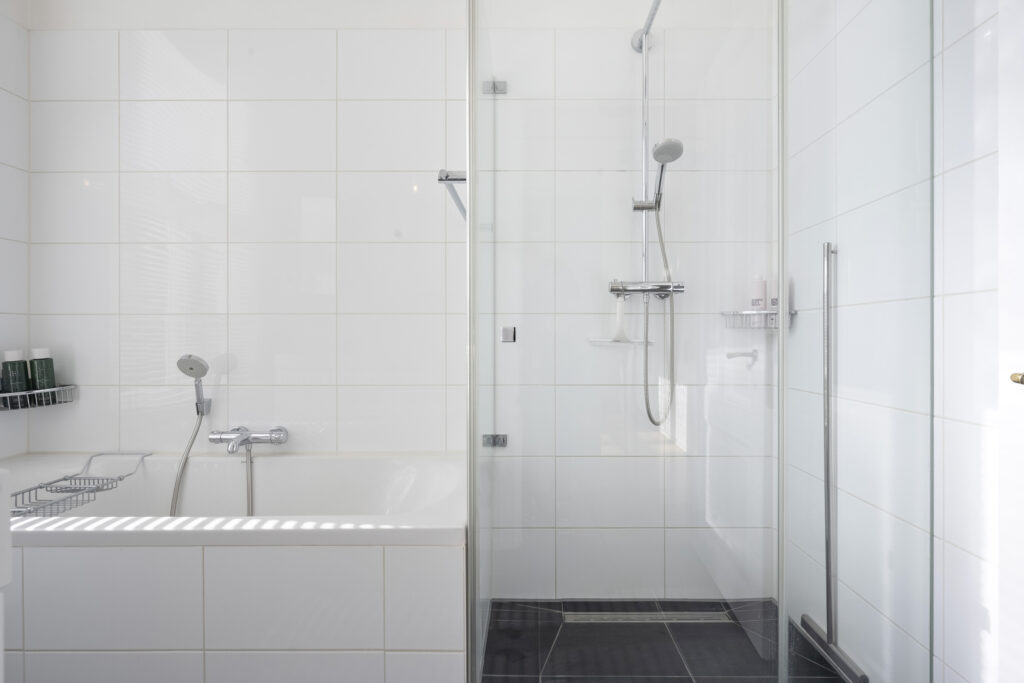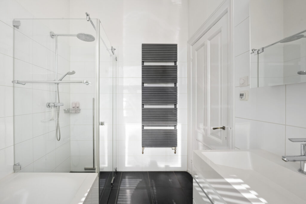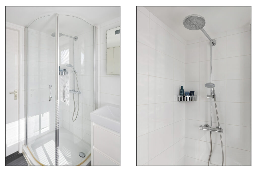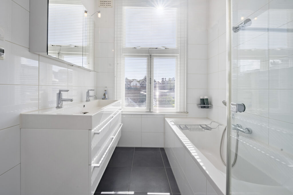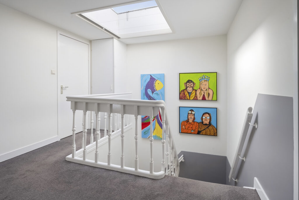 2e Verdieping: overloop met vaste kast, lichtkoepel en modern zwevend toilet met fontein en kast met cv-ketel, slaapkamer aan voorzijde met vaste kastenwand, extra brede zijkamer aan voorzijde, slaapkamer aan achterzijde met vaste kasten, 2e moderne badkamer voorzien van douche, meubel met dubbele wastafel, kastenwand en handdoekradiator