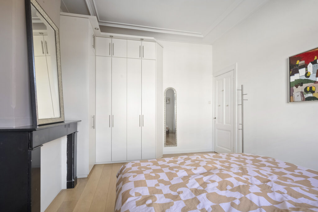 1e Verdieping: overloop voorzien van modern net toilet met fontein, slaapkamer aan voorzijde met houten vloer, erker, ornamenten plafond en vaste kastenwand, extra brede zijkamer aan voorzijde, slaapkamer aan achterzijde met houten vloer, schouw, ornamenten plafond en vaste kastenwand, moderne badkamer met ligbad, inloopdouche met handdouche en rainshower, meubel met dubbele wastafel, handdoekradiator en vloerverwarming, via overloop trap met dubbel bordes naar…..