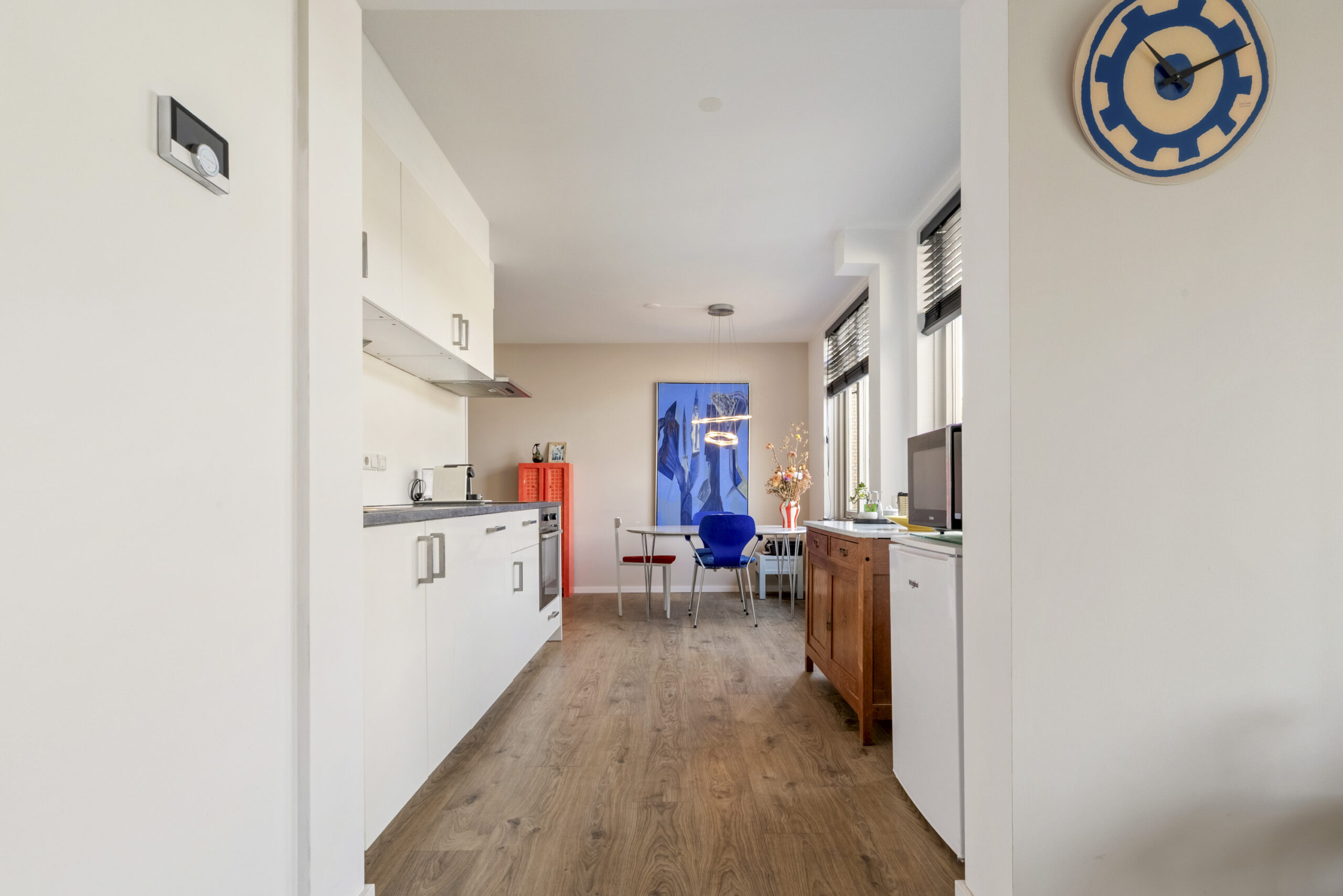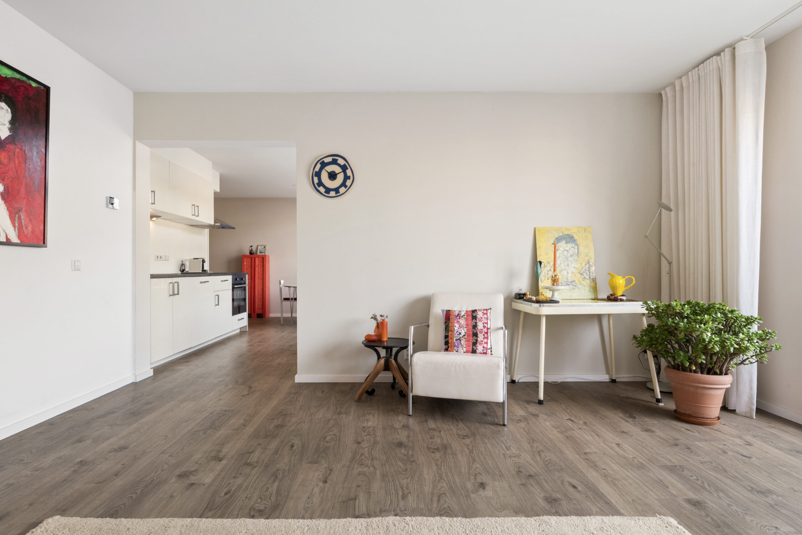 Op de 2e verdieping vind je een woonkamer met toegang naar het zonnige terras, een eetkeuken en een moderne badkamer. Het terras is op het westen gelegen en is voorzien van een zonwering. De ruime slaapkamer en de walkin kamer met toilet liggen op de 3e verdieping. De walkin kamer kan eventueel dienen als tweede slaapkamer of als werk-/studeerruimte. De mooie pvc-vloer met houtlook door het hele appartement zorgt voor een moderne en onderhoudsvriendelijke uitstraling. Op de parterre heb je een eigen berging. Deze is vanuit buiten makkelijk bereikbaar en is lekker ruim.