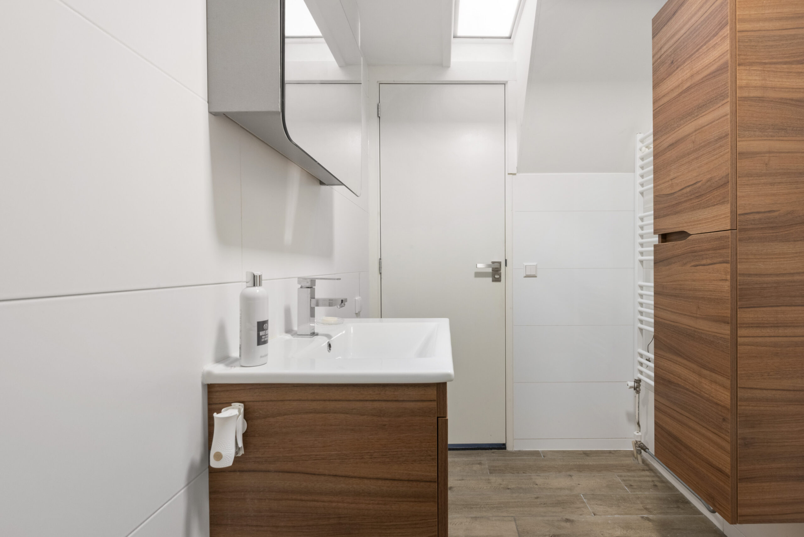 2e Verdieping: entree appartement, hal voorzien van zeer ruime bergkast met cv-ketel, wasmachine aansluiting en mechanische ventilatie, modern zwevend toilet met fontein, royale en lichte woonkamer met deur naar zonnig terras op het westen, moderne eetkeuken met diverse inbouwapparatuur, moderne badkamer met inloopdouche voorzien van handdouche en rainshower, wastafelmeubel en handdoekradiator, via hal trap naar….