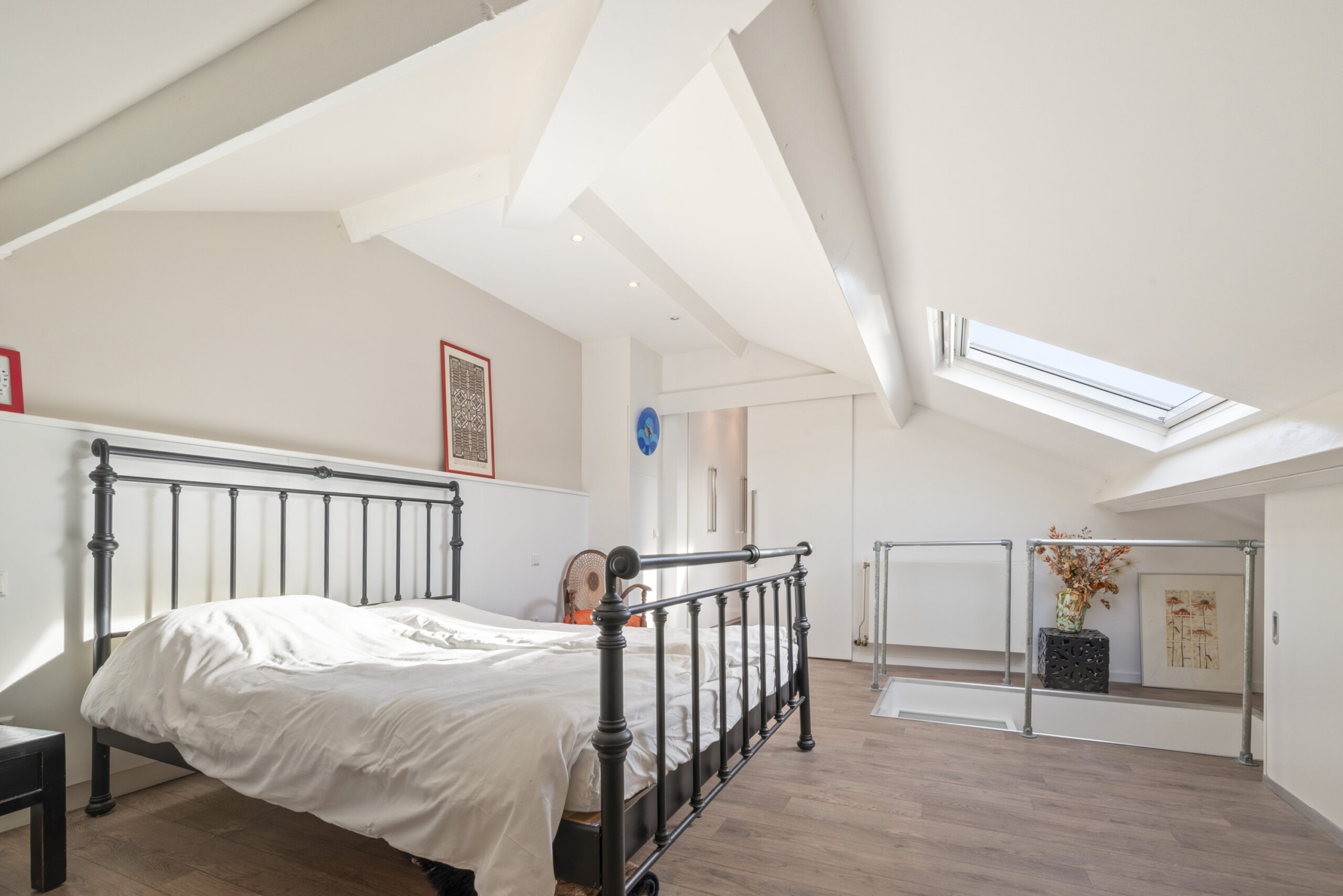 3e Verdieping: ruime slaapkamer met Velux dakraam en veel bergruimte, walk in kamer met vaste kastenwand, Velux dakraam, veel bergruimte en modern zwevend toilet met fontein