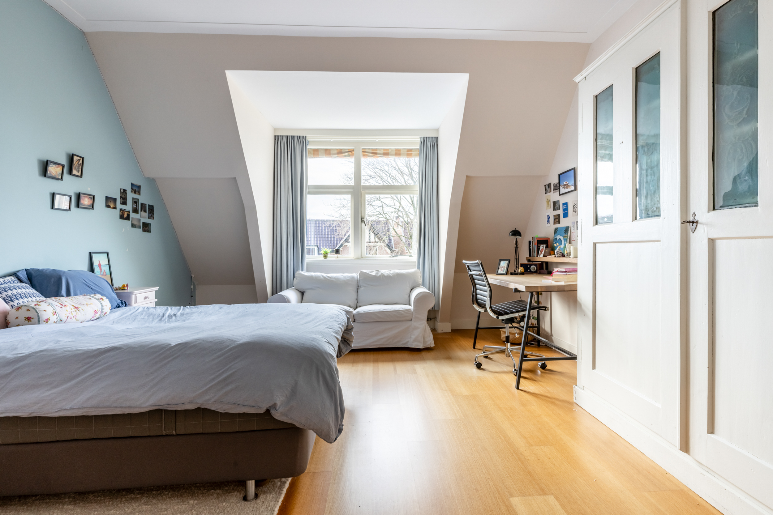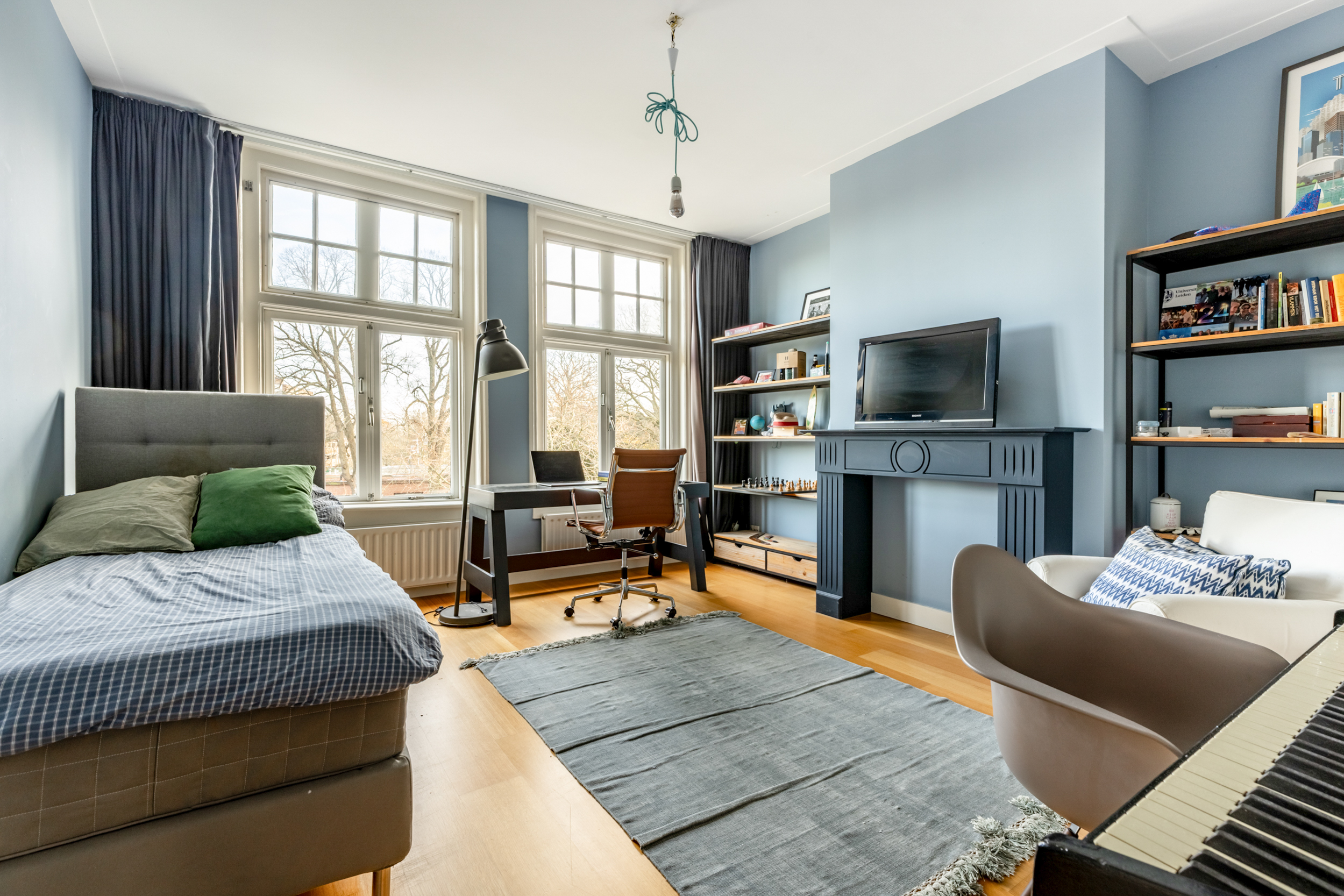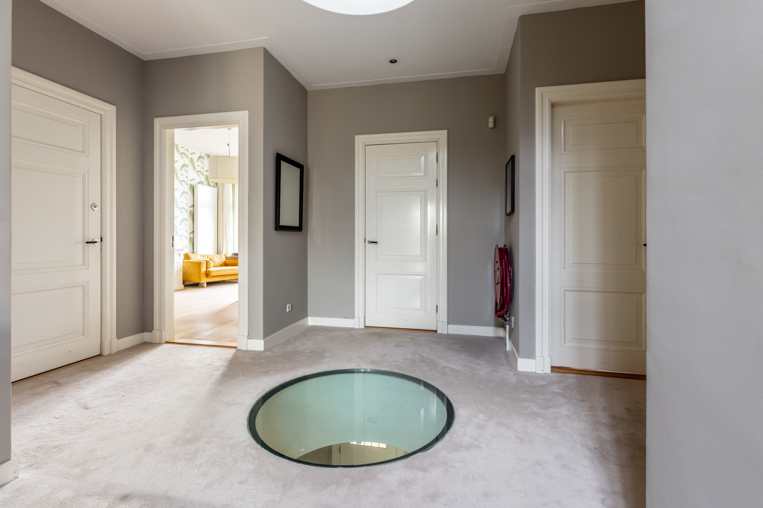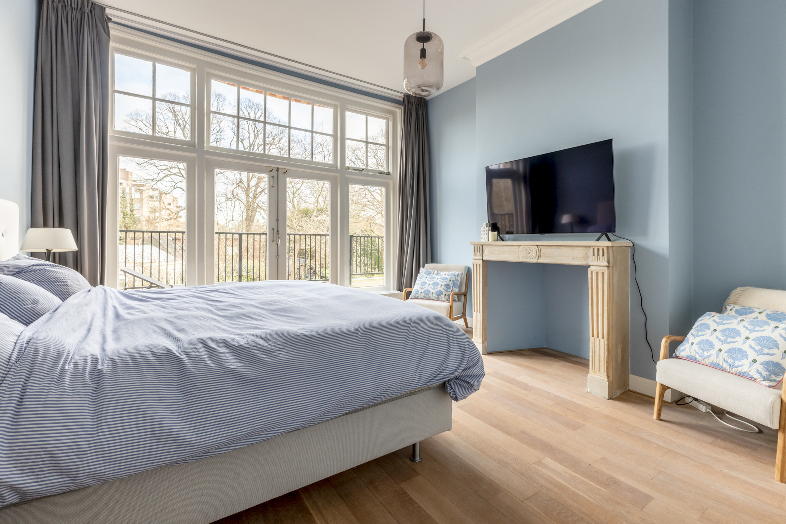 Thanks to the expansive garden and its location on the outer bend of Westerhoutpark, you will experience a sense of tranquility that feels like you are in a detached home, offering privacy and plenty of sunshine from early morning until evening. The beautiful, very wide garden and the lush surrounding plots make it a green oasis where you are surrounded by flowering cherry, quince, fig, and plum trees from early spring until well into autumn. The rural feel makes you immediately forget that you are so close to the center of Haarlem. From the garden, you look out over historic country houses such as “Groen en Hout,” “Houtrust,” and the orangery of the former estate/farmstead “Westerhout.” You can also enjoy the tranquility of the Haarlemmerhout, which is visible from the garden. The large hall and glass panels in the ceilings connect all rooms and floors in a very functional way. This keeps everyone connected in this exquisite family home, despite the many rooms.