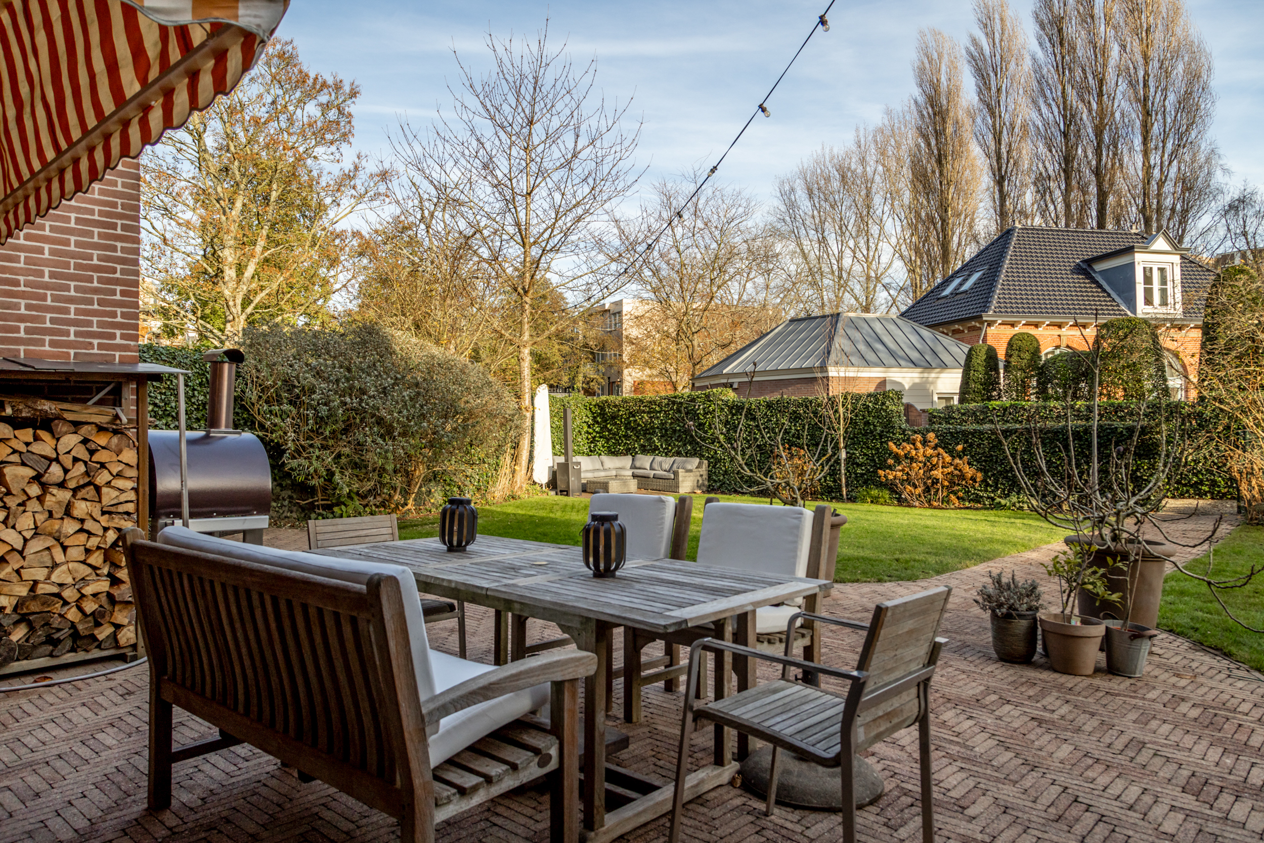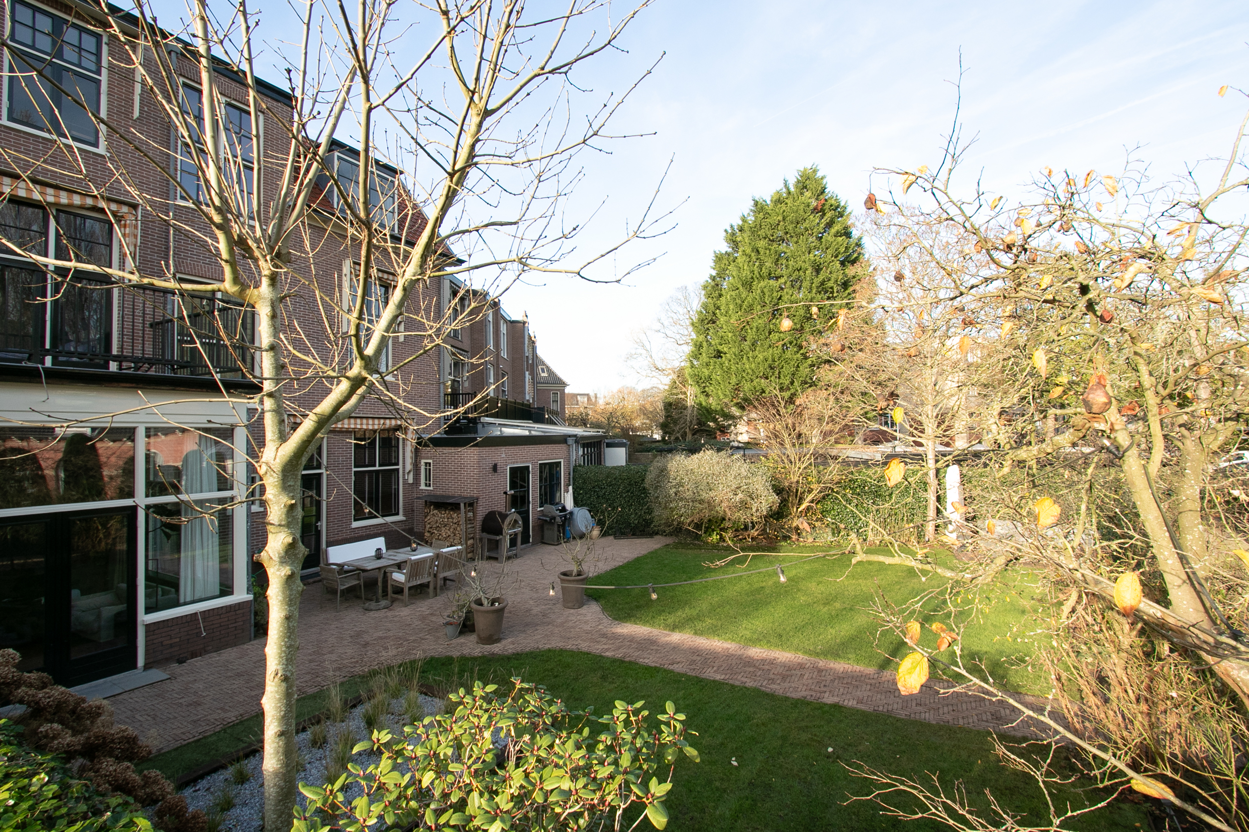 Dankzij de wijd uitlopende tuin en de ligging in de buitenbocht van het Westerhoutpark ervaar je rust die voelt als vrijstaand, dus privacy en volop zon – van vroeg in de ochtend tot in de avond. Door de prachtige zeer brede tuin en de weelderige omliggende percelen is het een groene oase waar je van het vroege voorjaar tot ver in het najaar omringd wordt door bloemende kersenbomen, kweeperen, vijgen en pruimenbomen. Door het landelijke gevoel vergeet je hier onmiddellijk dat je zo dicht bij het centrum van Haarlem zit. Vanuit de tuin kijk je uit over de historische buitenhuizen zoals “Groen en Hout”, “Houtrust” en de orangerie van het voormalige landgoed / hofstede “Westerhout”. Tevens ervaar je de rust van de Haarlemmerhout dat zichtbaar is vanaf de tuin. Door de grote hal en doorkijkglas in de plafonds worden alle vertrekken en etages zeer functioneel met elkaar verbonden. Hierdoor blijft iedereen goed met elkaar verbonden in dit voortreffelijke familiehuis ondanks de vele ruimtes.