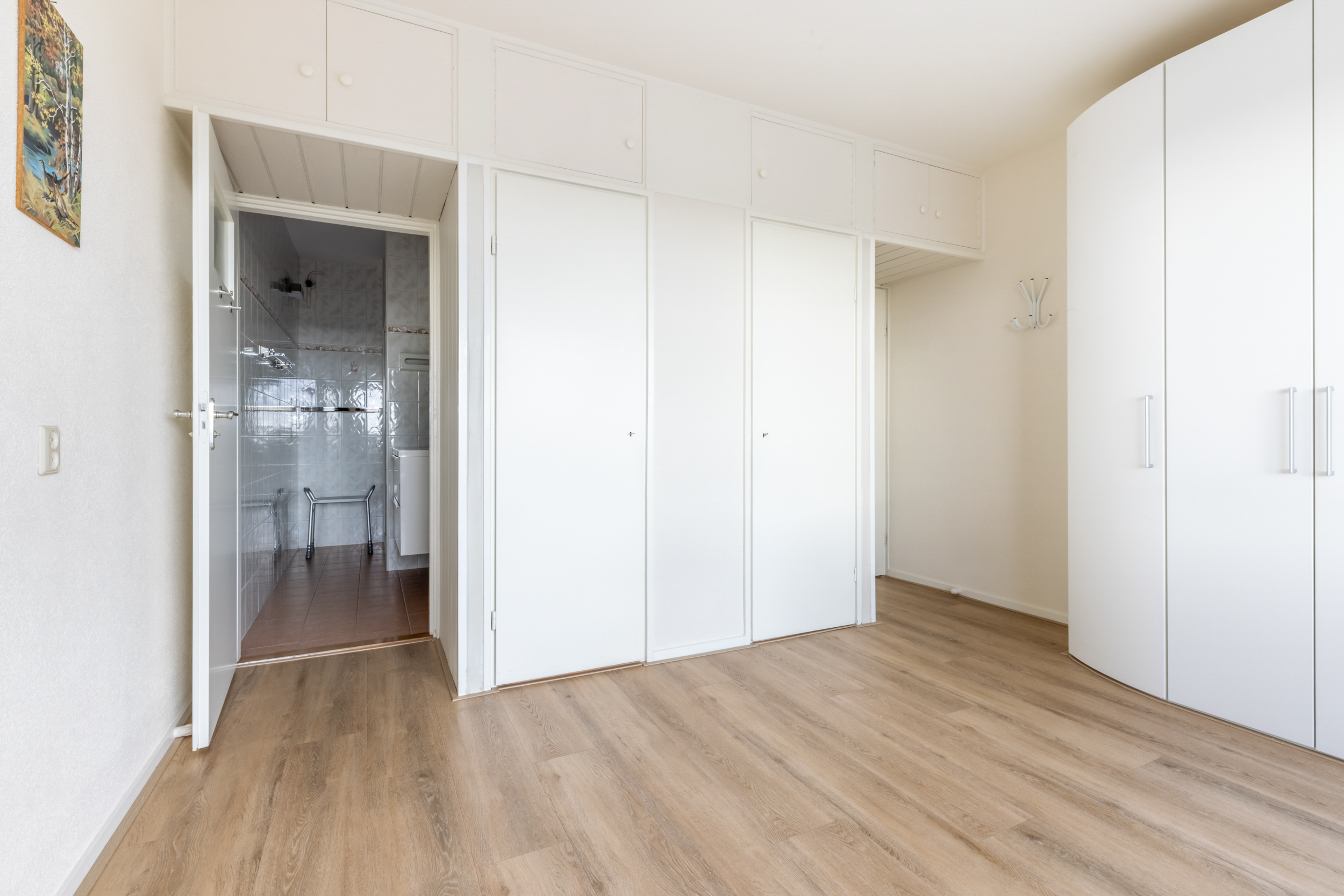 PURE* living in a well-maintained and spacious corner apartment located on the 7th floor of the ‘De Kinheim’ service flat on the outskirts of Haarlem-Heemstede. Suitable for active seniors (50+ years). This 3-room apartment with private storage room on the ground floor has a living area of over 95 m2, features 2 very spacious bedrooms with built-in wardrobes, a well-maintained kitchen and bathroom, and is surprisingly light thanks to the large windows and fantastic views of the green, wooded surroundings. The apartment complex is accessible via a locked entrance with a spacious communal hall and has elevators. You can park your car in the public parking area at the front.