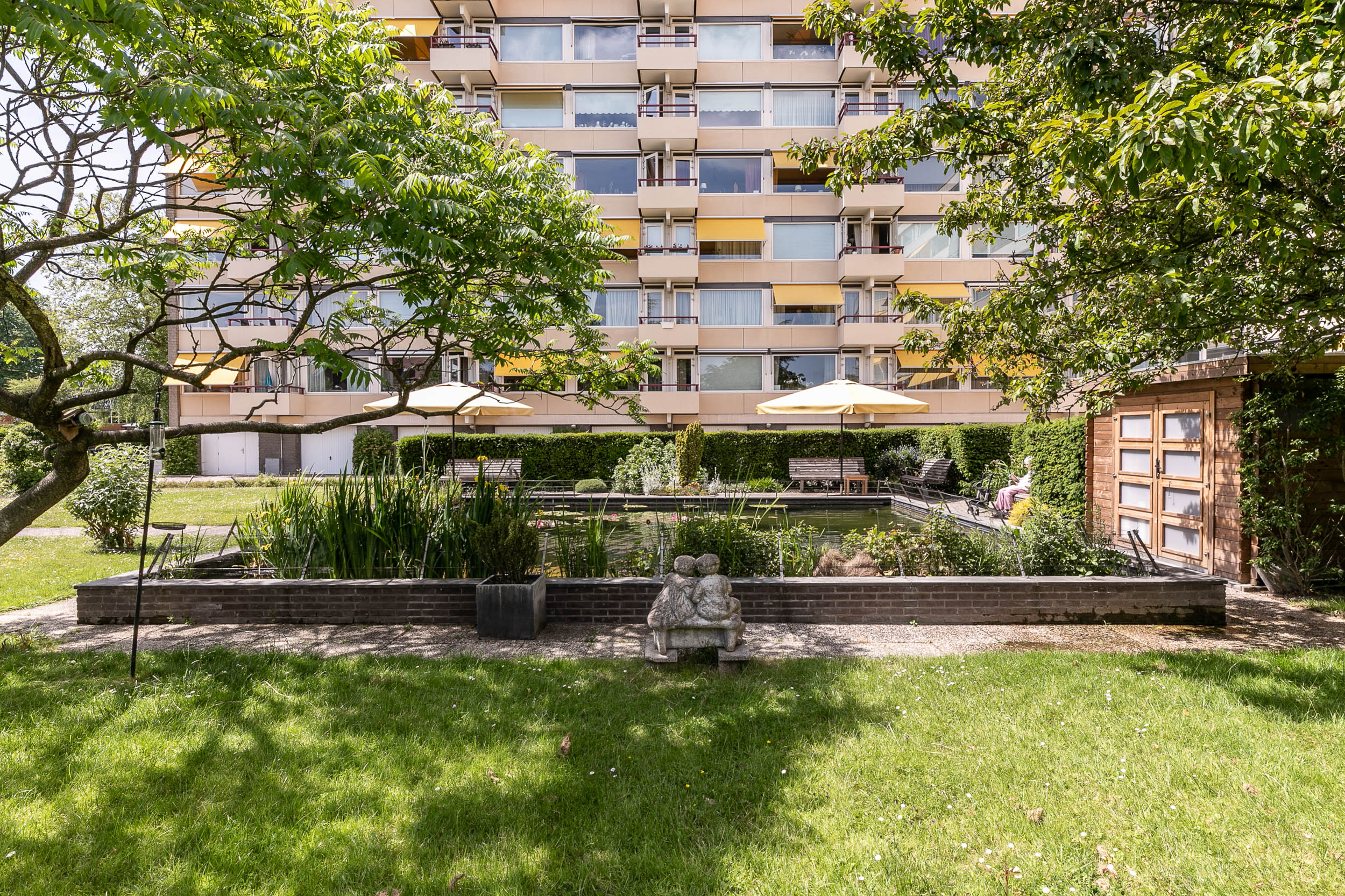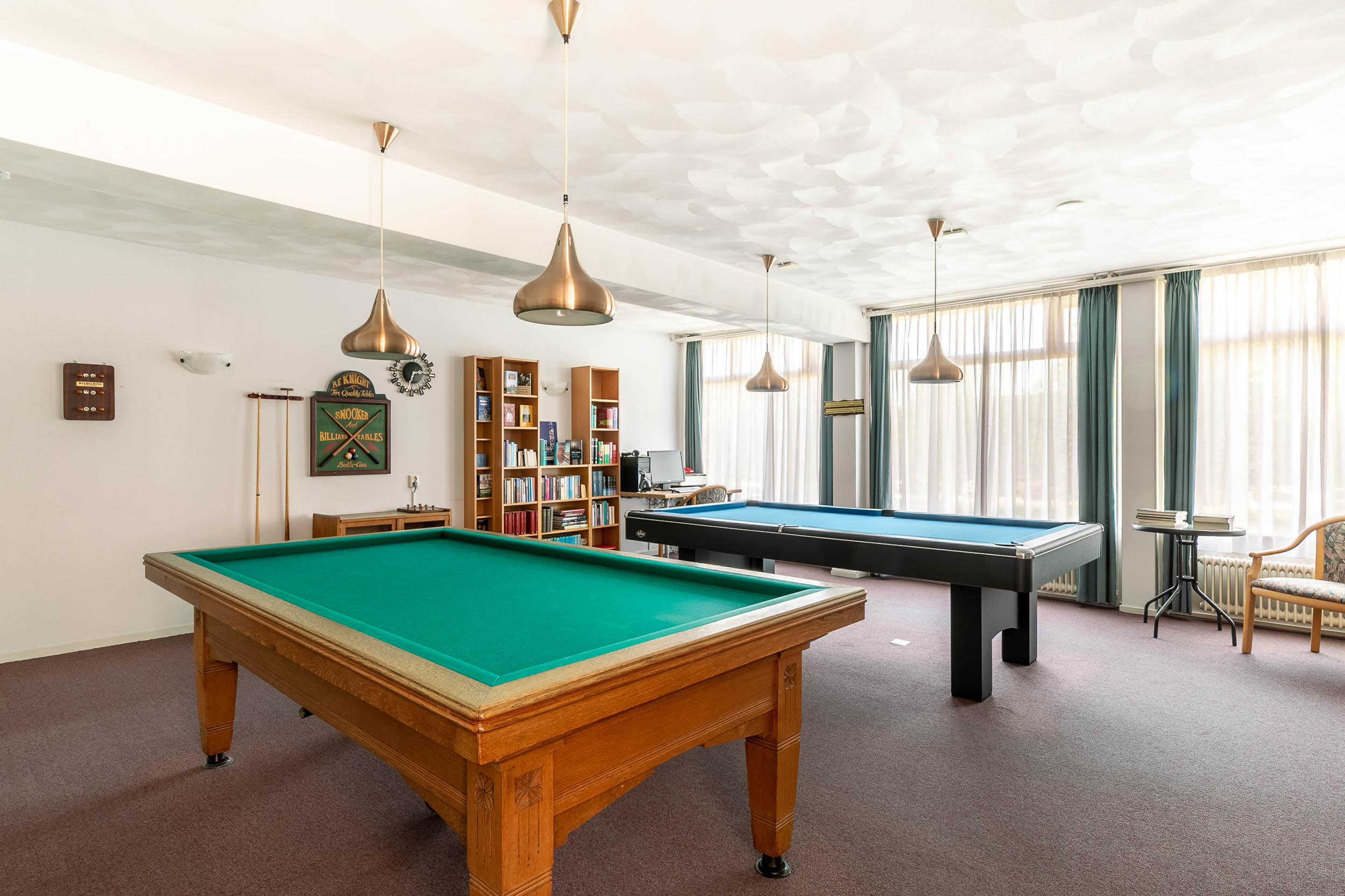 It has a cozy recreation room with a library, reading corner, computer room, a billiard room with two billiard tables, and guest rooms are available for family/friends. Inside, there is a professional ladies’ and men’s hair salon, a pedicure salon, and a massage salon. If desired, care can be arranged through the home care organization Zorgbalans. The park-like courtyard garden features a boules court and a beautiful pond.