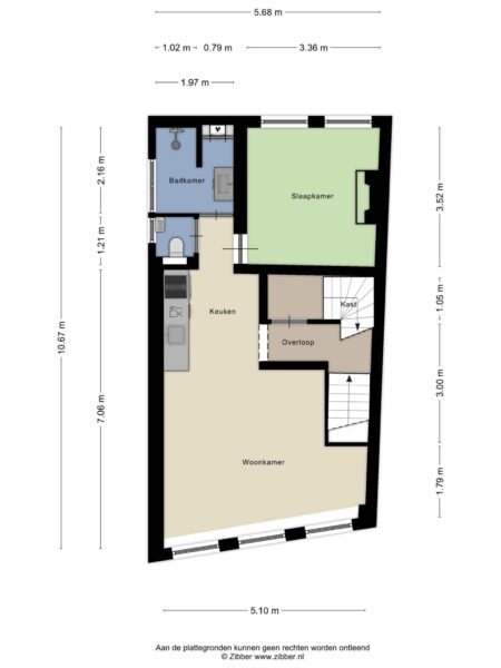 Begane grond: Binnenkomst hal met trap naar boven. Bovenaan de trap een opbergkast.