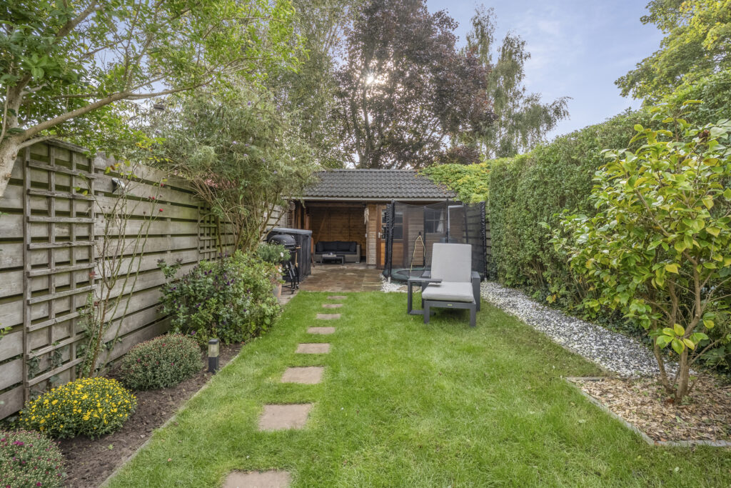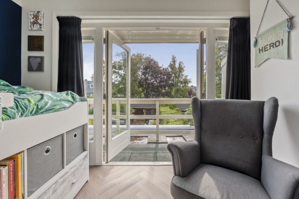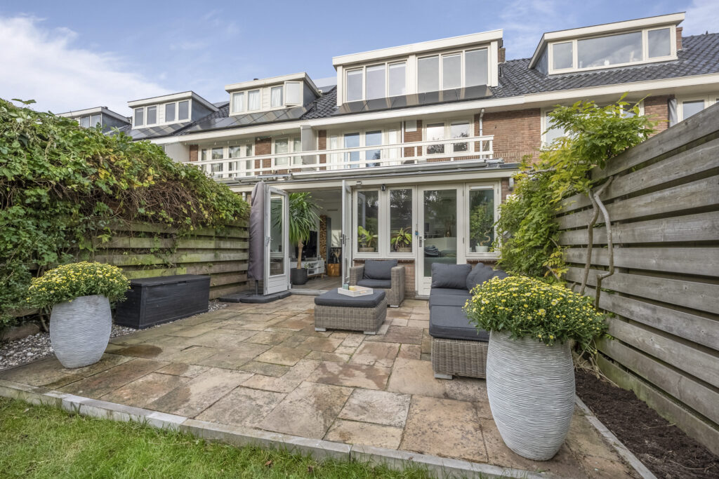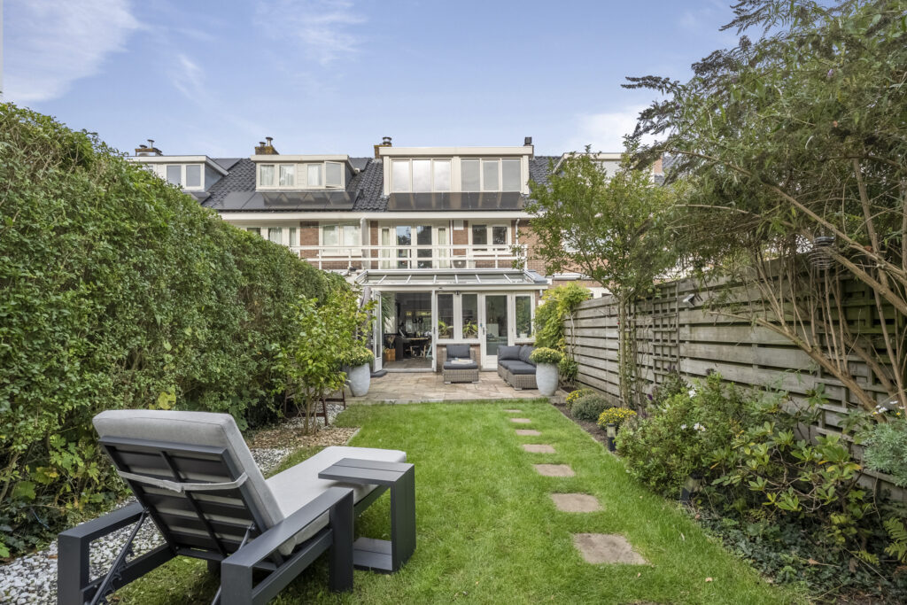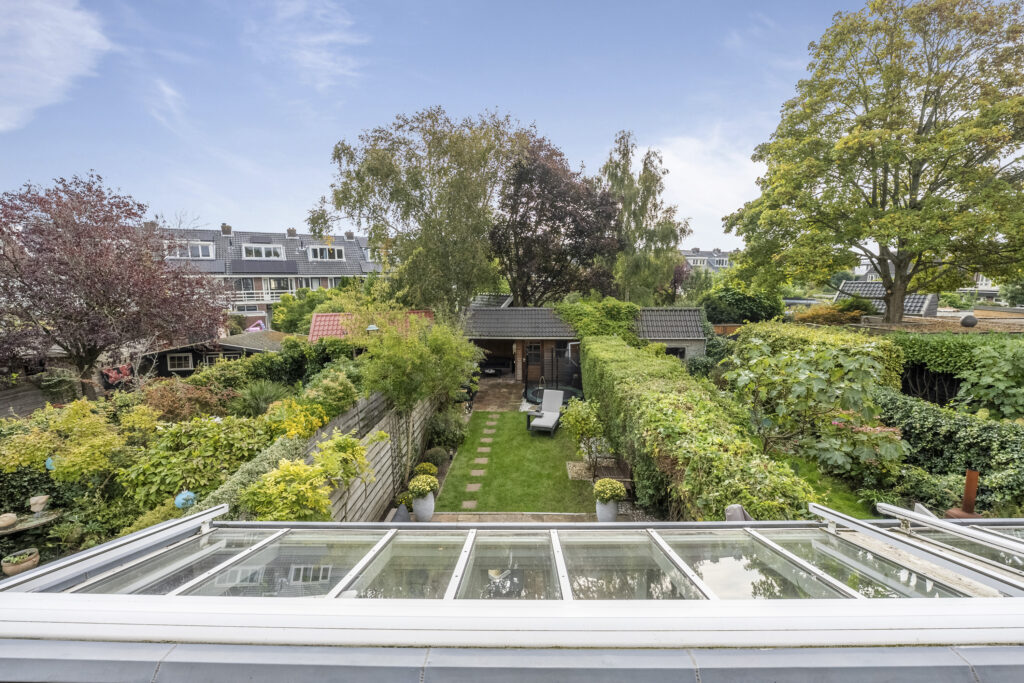 In een geliefde en zeer kindvriendelijke woonomgeving staat in een brede laan deze zeer energiezuinige gezinswoning (energielabel A+++) met diepe zonnige tuin. Het huis is aan de achterkant over de volle breedte uitgebouwd en de keuken is aan de voorzijde geplaatst hierdoor is de woonkamer heerlijk ruim en op de tuin gericht. Doordat de woning op de 1e en 2e verdieping over de poort is gebouwd heeft de woning een extra royale maatvoering en zijn alle slaapkamers zeer ruim. Op de 1e verdieping heb je 3 goede slaapkamers en een luxe badkamer en op de 2e verdieping nog eens 2 ruime slaapkamers en een 2e moderne badkamer. En dan de tuin, die is ca. 19 meter diep en ligt op het zuidoosten. Een heerlijke zonnige tuin met een groot zonnig terras direct aan de woning gelegen en een gezellige veranda waar je op warme dagen van de schaduw kunt genieten maar ook tot laat in de avond heerlijk kunt zitten. De kinderen zullen zich prima vermaken op de ingegraven trampoline. Verder is de tuin voorzien van een ruime schuur met bergvliering en een achterom. En aan de voorzijde vind je een tuin op het noordwesten.