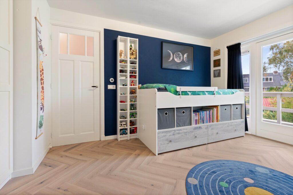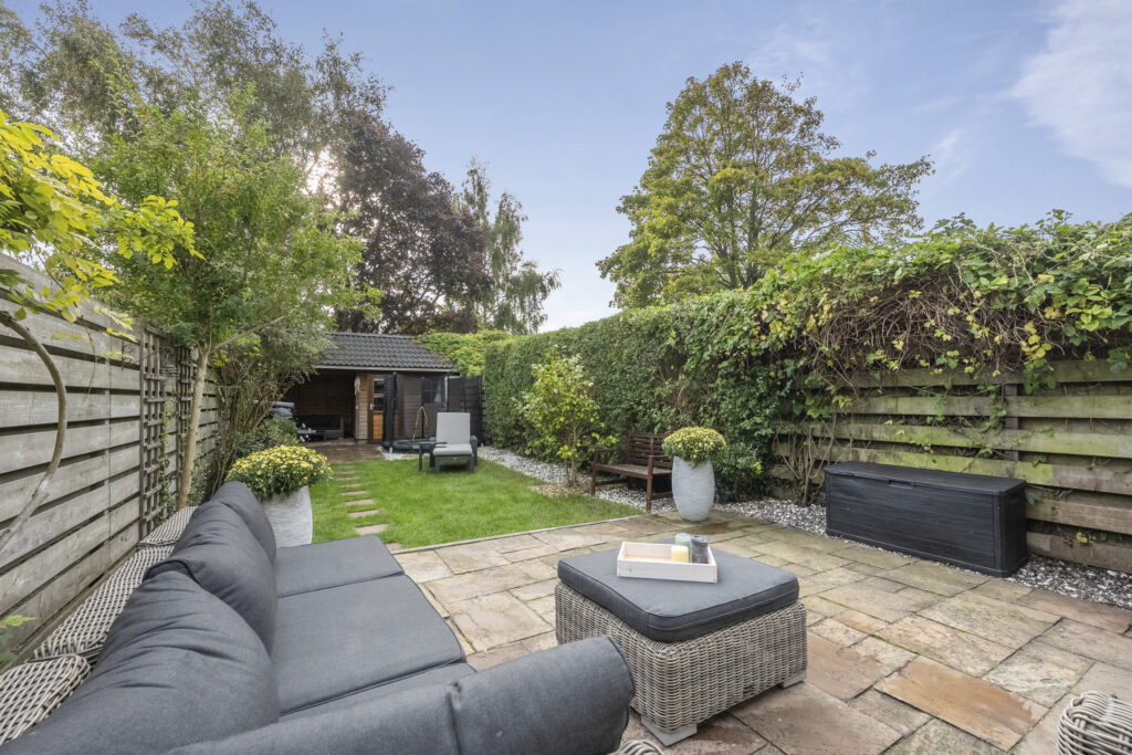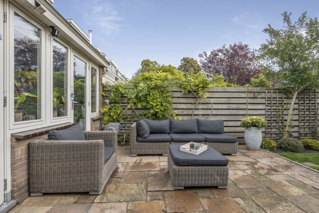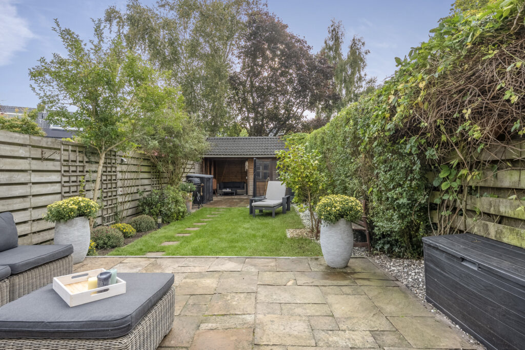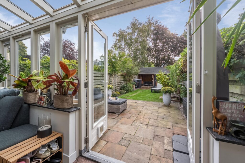 In een geliefde en zeer kindvriendelijke woonomgeving staat in een brede laan deze zeer energiezuinige gezinswoning (energielabel A+++) met diepe zonnige tuin. Het huis is aan de achterkant over de volle breedte uitgebouwd en de keuken is aan de voorzijde geplaatst hierdoor is de woonkamer heerlijk ruim en op de tuin gericht. Doordat de woning op de 1e en 2e verdieping over de poort is gebouwd heeft de woning een extra royale maatvoering en zijn alle slaapkamers zeer ruim. Op de 1e verdieping heb je 3 goede slaapkamers en een luxe badkamer en op de 2e verdieping nog eens 2 ruime slaapkamers en een 2e moderne badkamer. En dan de tuin, die is ca. 19 meter diep en ligt op het zuidoosten. Een heerlijke zonnige tuin met een groot zonnig terras direct aan de woning gelegen en een gezellige veranda waar je op warme dagen van de schaduw kunt genieten maar ook tot laat in de avond heerlijk kunt zitten. De kinderen zullen zich prima vermaken op de ingegraven trampoline. Verder is de tuin voorzien van een ruime schuur met bergvliering en een achterom. En aan de voorzijde vind je een tuin op het noordwesten.