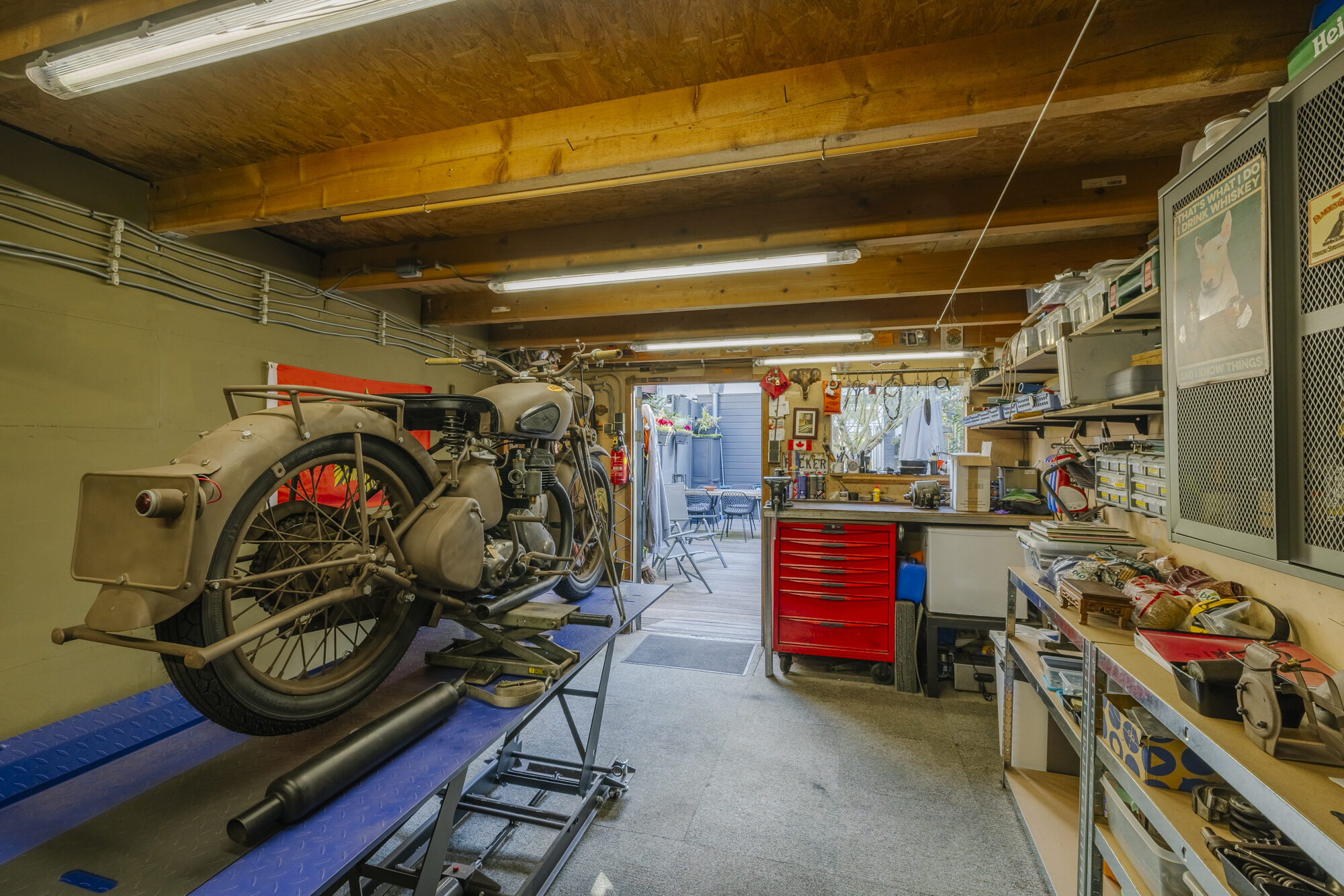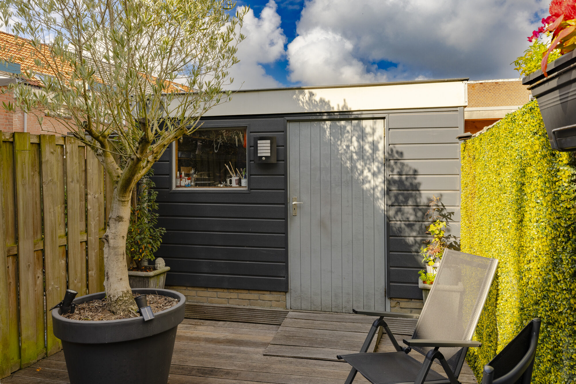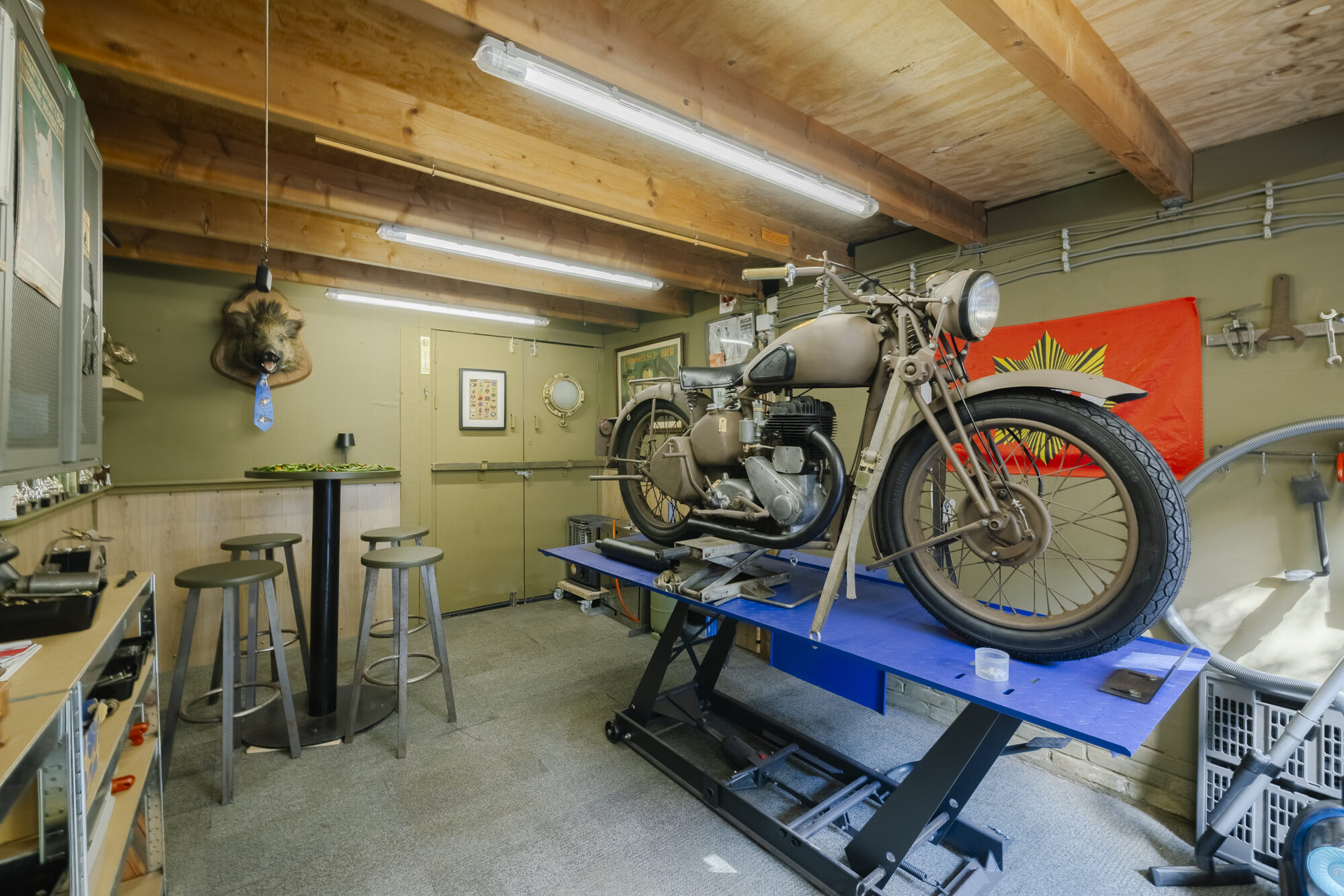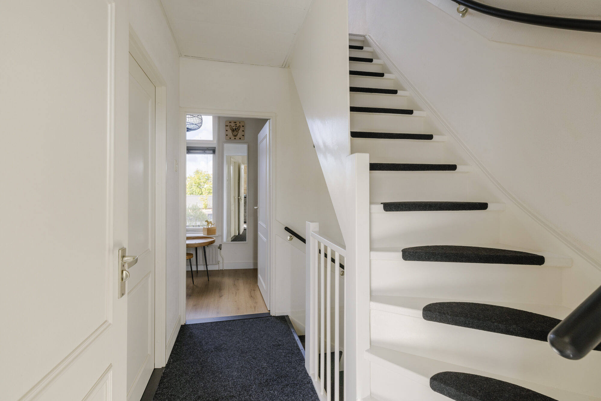 Ground floor: Entrance hall with staircase. Living room at the front with a beautiful unobstructed view of the Spaarne River. Extended dining room with open kitchen at the rear. Half-bath in the extension. The west-facing garden features a spacious storage shed with electrical hookups and a back entrance, currently used as a workshop.