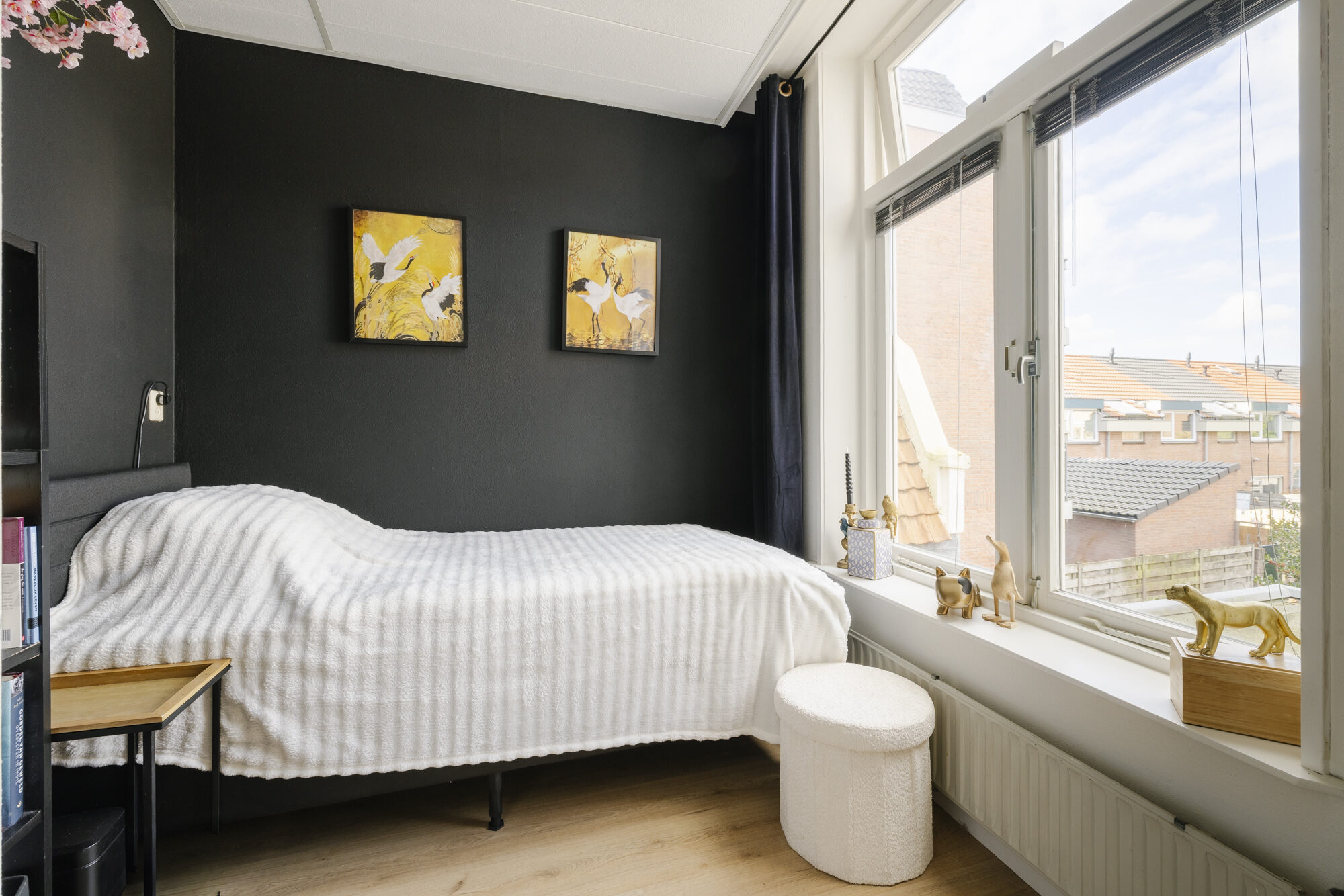 2e verdieping: Overloop met dakraam, slaapkamer aan de voorzijde met uitzicht over het Spaarne, mogelijkheid tot kleine slaapkamer aan de achterzijde met dakraam.