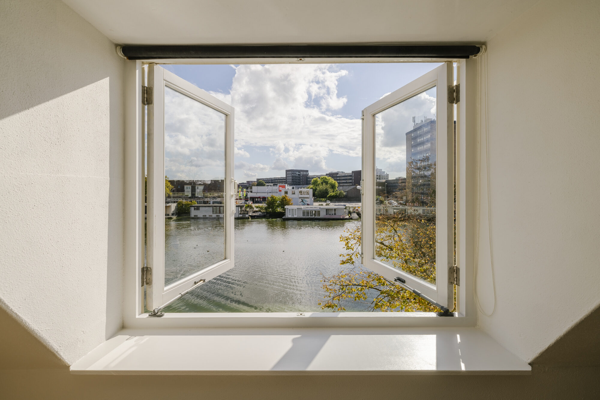 PUUR* living bliss by the water with a fantastic view of the beautiful Spaarne River! This playfully laid-out home (78 m²) has 2 bedrooms (with the option to add a third). The lovely west-facing backyard is a wonderful place to relax and soak up the sun; there is also a spacious storage shed and a back entrance. Enjoy peaceful living on the edge of Rozenprieel, yet just a 10-minute walk from the lively center of Haarlem.